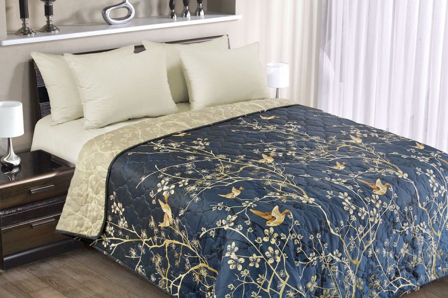 Жаккард — крупноузорчатая ткань, по внешнему виду напоминающая гобелен. Производится как из натуральных нитей — хлопка, льна, шелка, так и из синтетических, путем переплетения на специализированном жаккардовом станке. Особенности: легкость, термостойкость, прочность и долговечность.