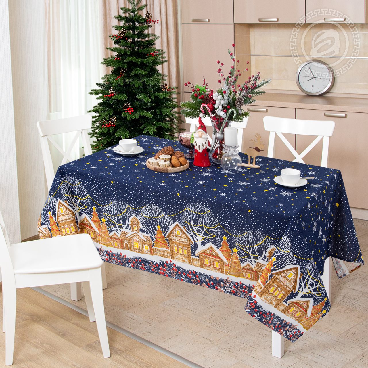 Если Вы загадываете желание под бой курантов и верите в новогодние чудеса, тогда наш праздничный дизайн «Полночь» станет идеальным дополнением зимнего торжества. На новогодней скатерти из рогожки изображена великолепная улица, словно из старых добрых сказок. Избы с резными ставнями, ёлочки с шариками и звездами, красивые снежинки, парящие в ночной мгле, - волшебный дизайн создает атмосферу уюта, тепла и ощущение праздника. «Полночь» - это прекрасный сюрприз для счастливых эмоций.