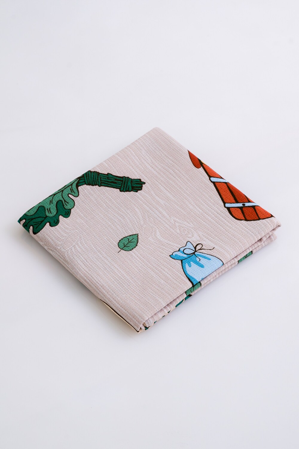 Полотенце банное "Поддай жару" отлично подойдет для сауны, бани и парилки. Легкое и тонкое полотенце хорошо впитывает влагу и не занимает много места в сумке. Хлопковое вафельное полотно послужившее материалом для полотенца отлично стирается и не прихотливо в уходе. Забавный банный принт с надписями ведрами и вениками гарантирует хорошее настроение. Для удобства использования к полотенцу пришита петелька.