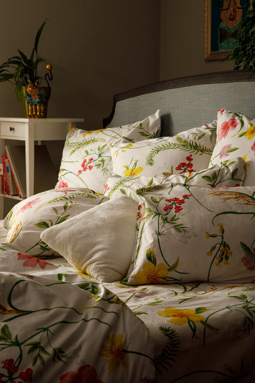 Жаккард — крупноузорчатая ткань, по внешнему виду напоминающая гобелен. Производится как из натуральных нитей — хлопка, льна, шелка, так и из синтетических, путем переплетения на специализированном жаккардовом станке. Особенности: легкость, термостойкость, прочность и долговечность.