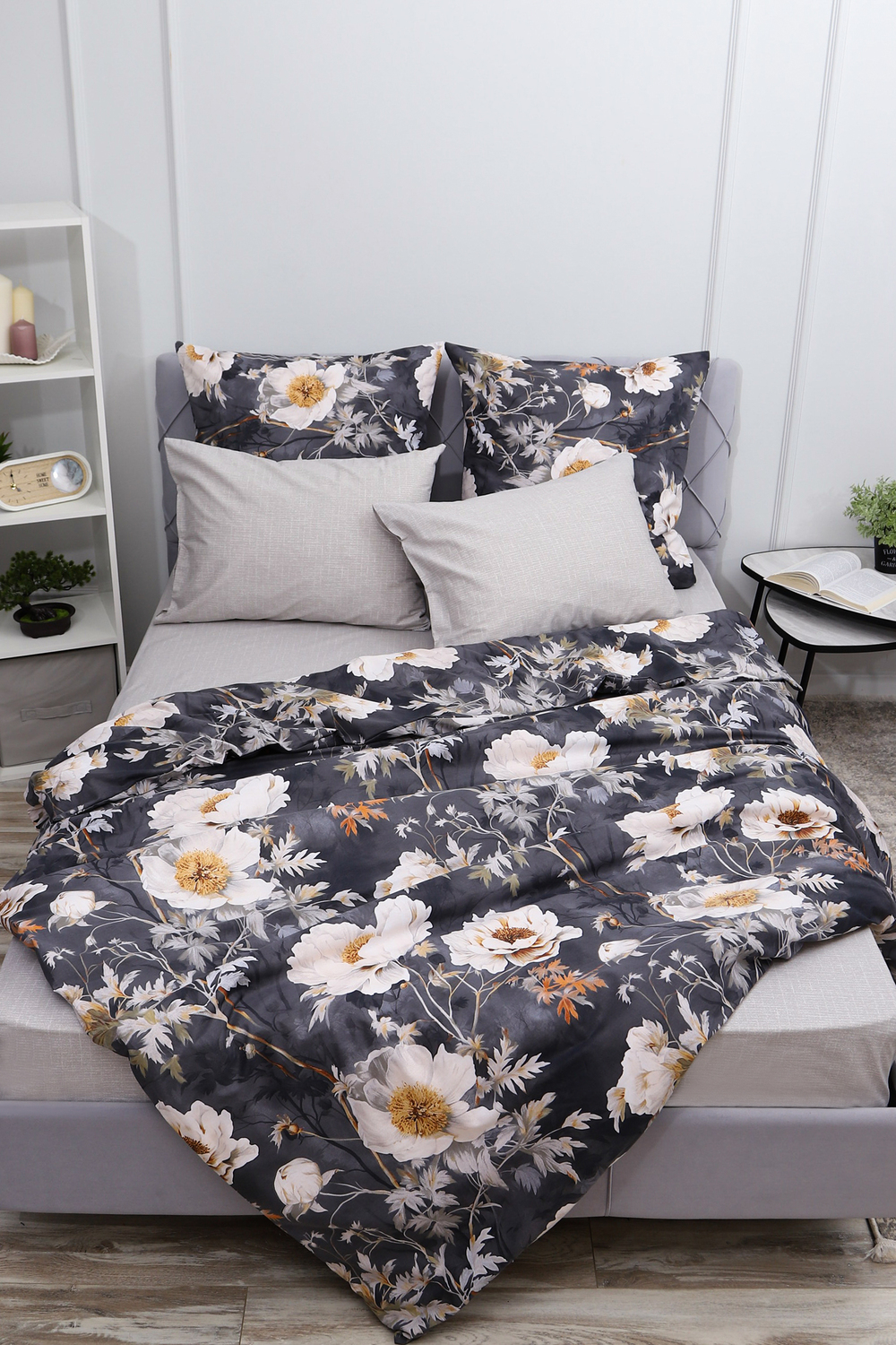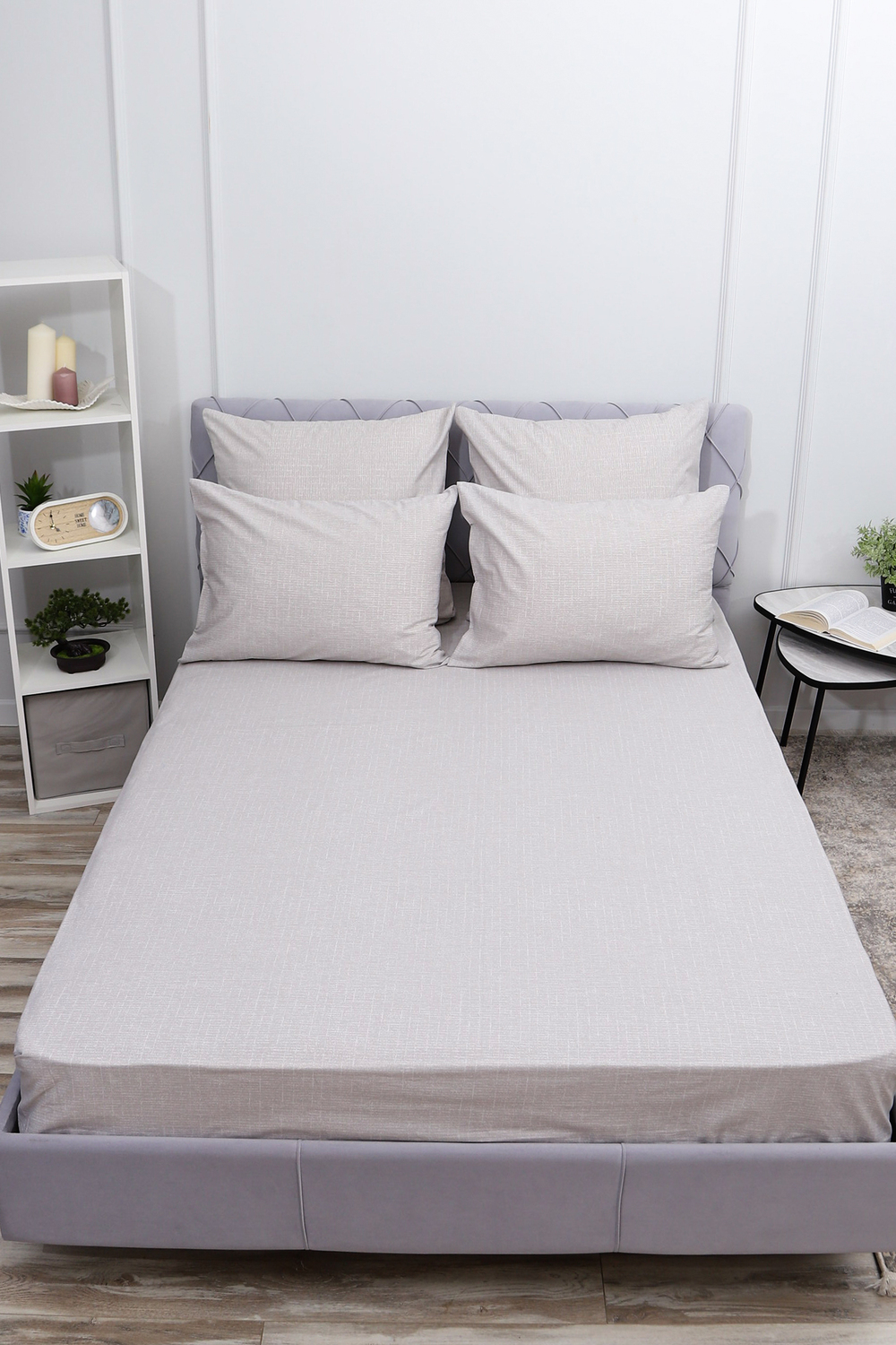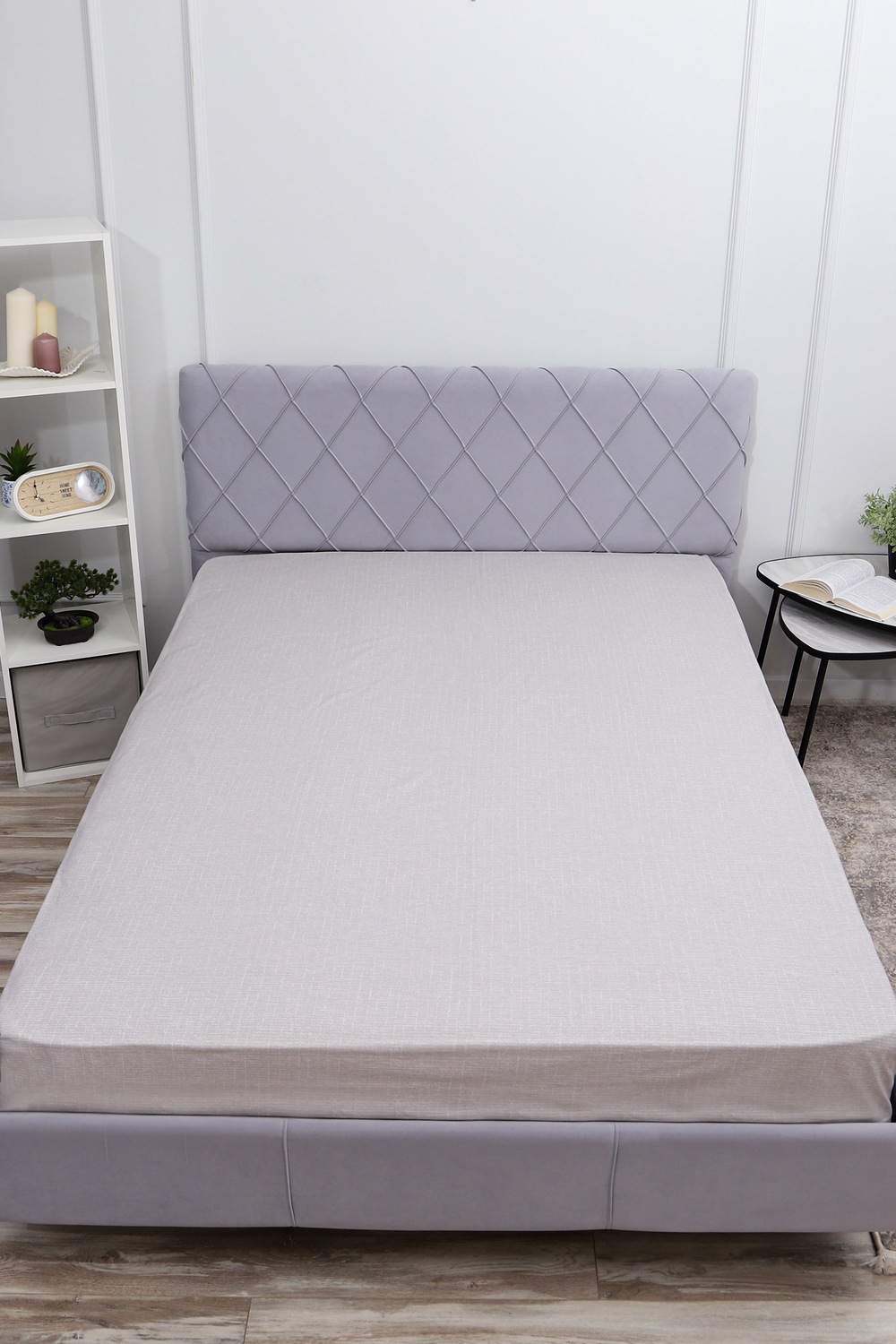 Простыня на резинке поплин Темная ночь 2-компаньон [серый]