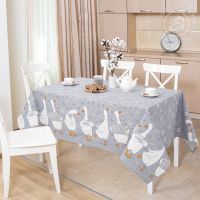 «Ромашки» – скатерть из рогожки с летним колоритом. На рисунке полевые цветы, а на переднем плане веселые гуси. Они очень обаятельные и забавные. Вот один из них играет на гармошке, а другой собирает ромашки, а третий пьет чай. Все персонажи вызывают умиление. Авторская композиция создает летнее настроение и дарит ощущение уюта. Скатерть с гусями – чудесный подарок для оформления кухни.