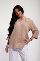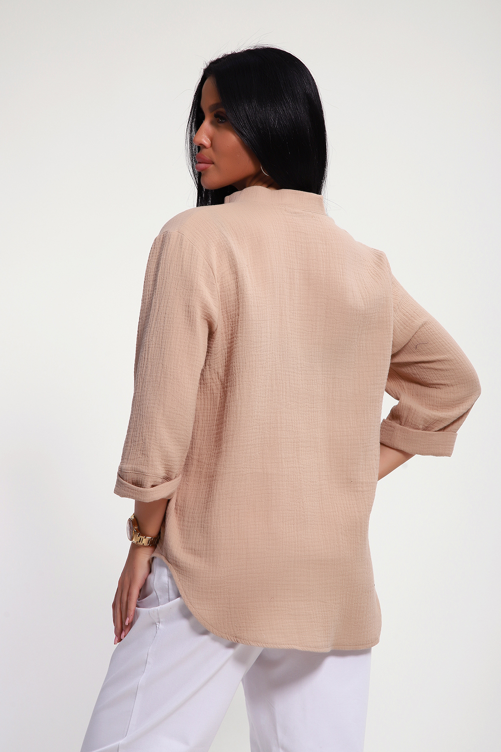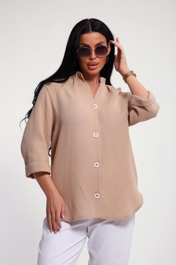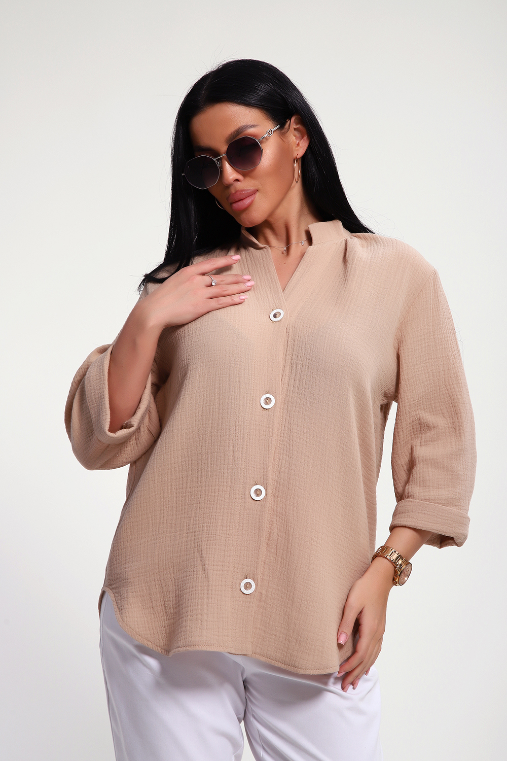 Женская муслиновая рубашка- это не просто предмет гардероба, это воплощение женственности, сочетающей в себе удобство, комфорт и безупречный вкус. Она станет вашим верным спутником при создании неповторимых образов, даря ощущение уверенности и свободы в любой ситуации. Муслин, известный своей невесомостью и воздушной структурой, позволяет коже дышать даже в самые жаркие дни. Свободный крой, удлиненный силует, фигурный низ рубашки, рукава 3/4 с манжетом, аккуратная стойка по горловине - эта модель воплощает в себе утонченную непринужденность и безупречный вкус. Застежка на петли и пуговицы образуют V-образный вырез по горловине, что удлиняет шею и подчеркивает женственность образа. Рекомендуется ручная стирка или бережная машинная стирка при 30 гр. Отжим при малых оборотах. Изделие практически не требует глажки, можно просто немного обработать паром.