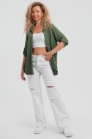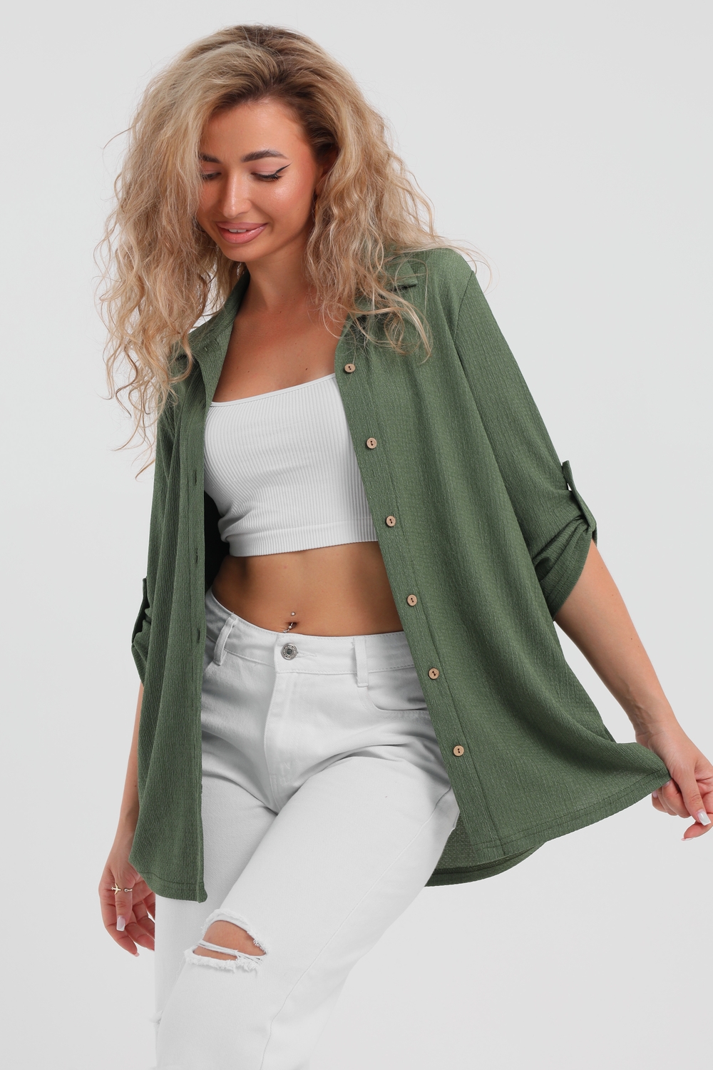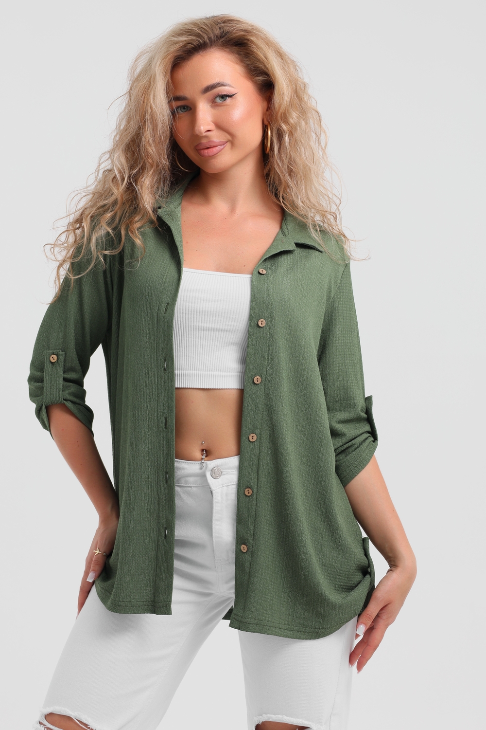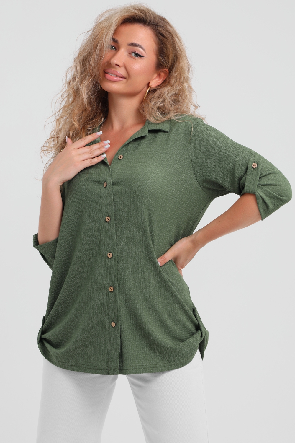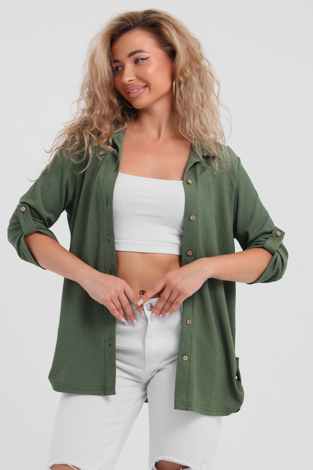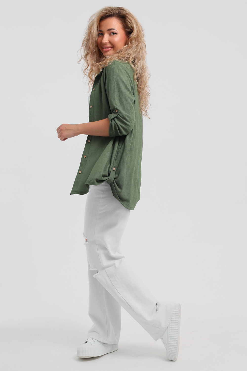 Модная рубашка в стиле oversize выполнена из лёгкого и приятного к телу материала - жатка. Это одна из самых модных и популярных моделей сезона. Рубашка имеет слегка удлинённую спинку, рукав 3/4, классический рубашечный воротник и планку. А модные цвета этого лета добавляют законченность деталям и определяют "must have" сезона. За счёт свободного фасона рубашку можно носить с любым типом фигуры, отлично подойдёт для беременных женщин, а также кормящих мам. Женская рубашка идеальна как для лета, так и для прохладного вечера. С помощью такой рубашки Вы можете создать деловой образ или летний расслабленный. А также отправиться на праздник или вечеринку, в школу или на прогулку, на пляж или провести незабываемый вечер дома. Модель такого плана идеально подойдёт и в качестве подарка для себя и своих любимых! Внимание! Замеры длины рукава проводились в застёгнутом виде. В растёгнутом виде длина рукава добавится на 10 см.