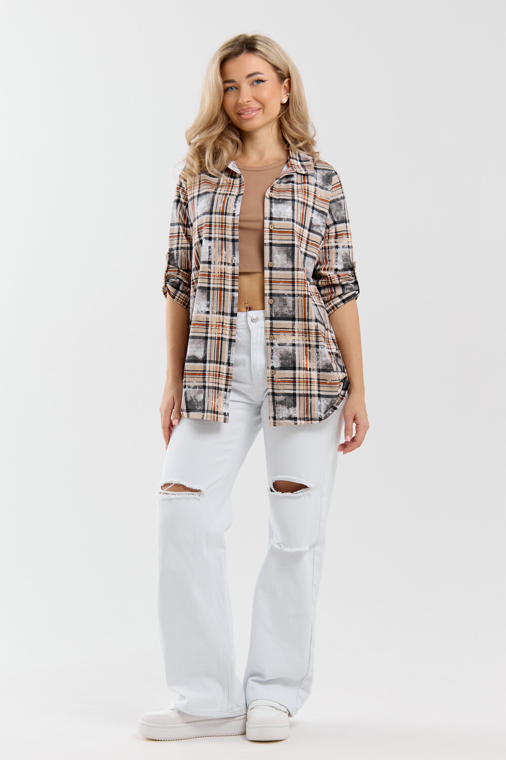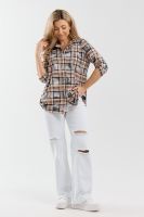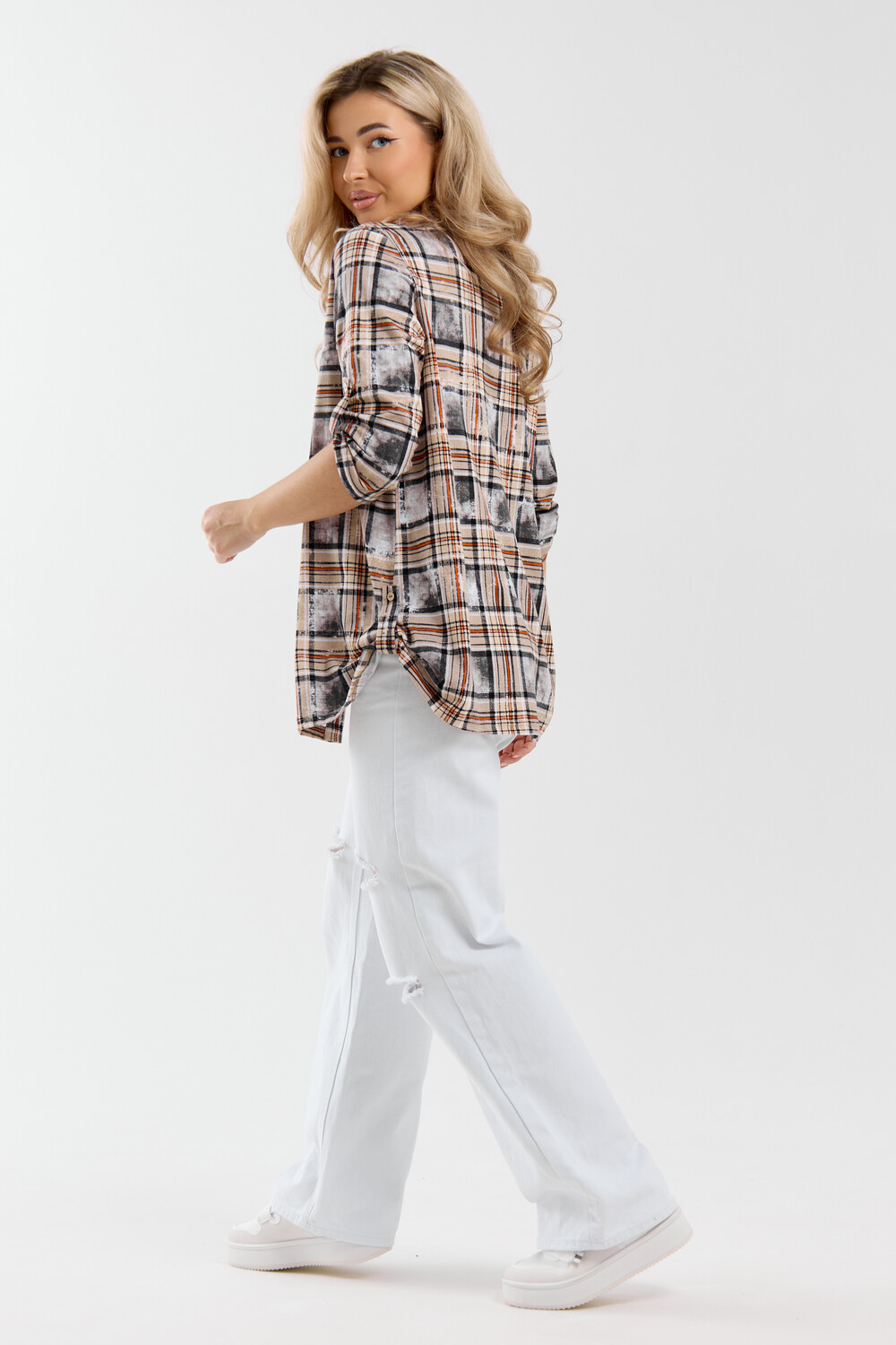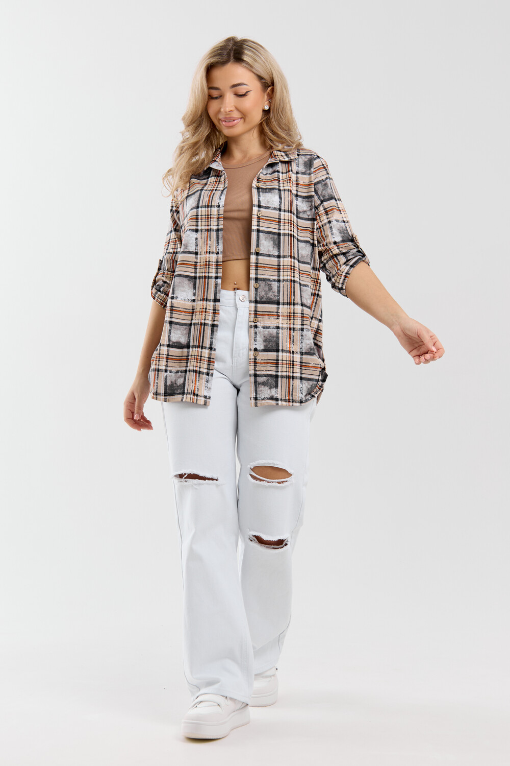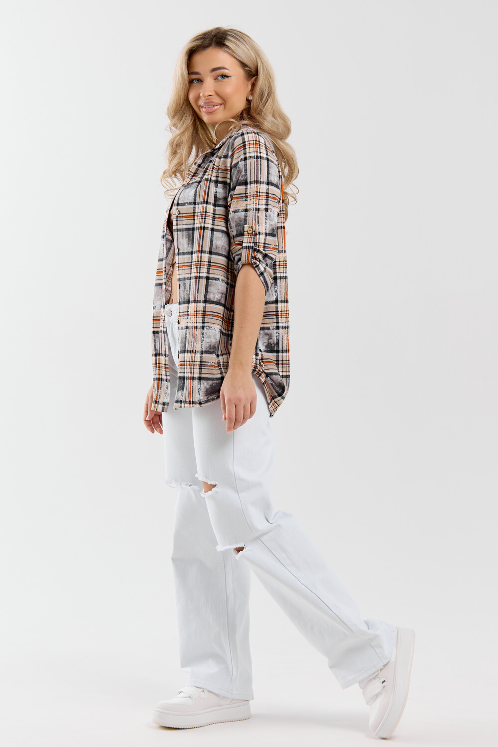 Женская стильная туника - рубашка выполнена из 100% хлопчатобумажного полотна. Новый дизайн и отличное качество делает изделие модным, легким и приятным на ощупь, не сковывает движения, поэтому отлично подойдет как для школы, дома и работы, так и для повседневной носки. Модель дополняет рубашечный воротник, паты и планка с расстёгивающимися пуговицами, делая её более комфортной. Женская свободная рубашка не сковывает движения, поэтому отлично подойдет будущим мамам, беременным женщинам и кормящим. Расстёгивающаяся планка сделает кормление малыша удобным и комфортным, а за счет качественного хлопкового трикотажа еще и безопасным и экологичным. Мы специально разработали рубашку для женщин большого размера. Большие размеры любят и подростки, которые предпочитают вещи оверсайз (oversize). Рубашка женская - это базовая вещь в гардеробе девушки или женщины, является идеальным вариантом для офиса, работы, школы и путешествий. Удлиненную рубашку можно носить дома и в качестве повседневной одежды. Внимание! Замеры длины рукава проводились в застёгнутом виде. В расстёгнутом виде длина рукава добавится на 10 см.