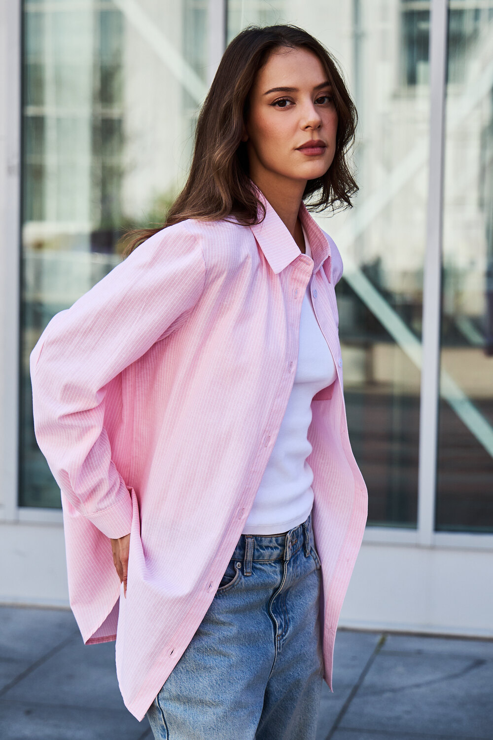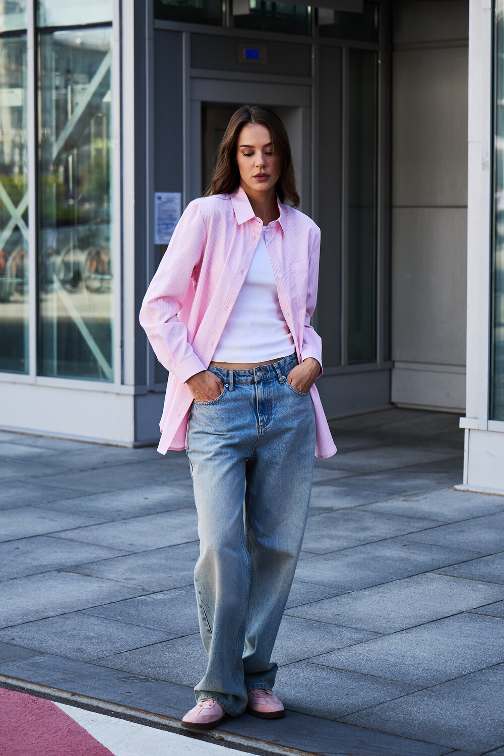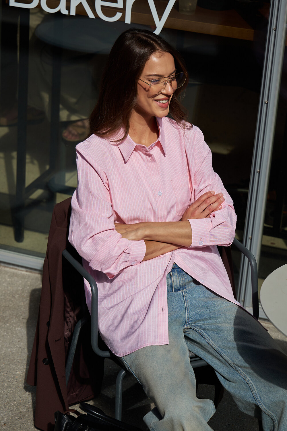 Ваш идеальный весенний образ начинается с нее: женская рубашка в полоску. Эта базовая модель из натурального хлопка – настоящее воплощение комфорта и стиля. Созданная для вашего удобства: прямой рукав и классический воротник дарят ощущение легкости и свободы движений на протяжении всего дня. Безупречная универсальность: модная блузка с легкостью адаптируется к любому настроению и событию – от расслабленных повседневных прогулок до строгих офисных будней. Изысканность в каждой детали: удлиненный силуэт, элегантный длинный рукав и широкий воротник придают этой полосатой рубашке особый шарм. Она станет вашим верным спутником на романтических свиданиях, обеспечит комфорт в школе и подчеркнет профессионализм в офисе. Легкость и дышащие свойства хлопка гарантируют непревзойденное ощущение свежести.