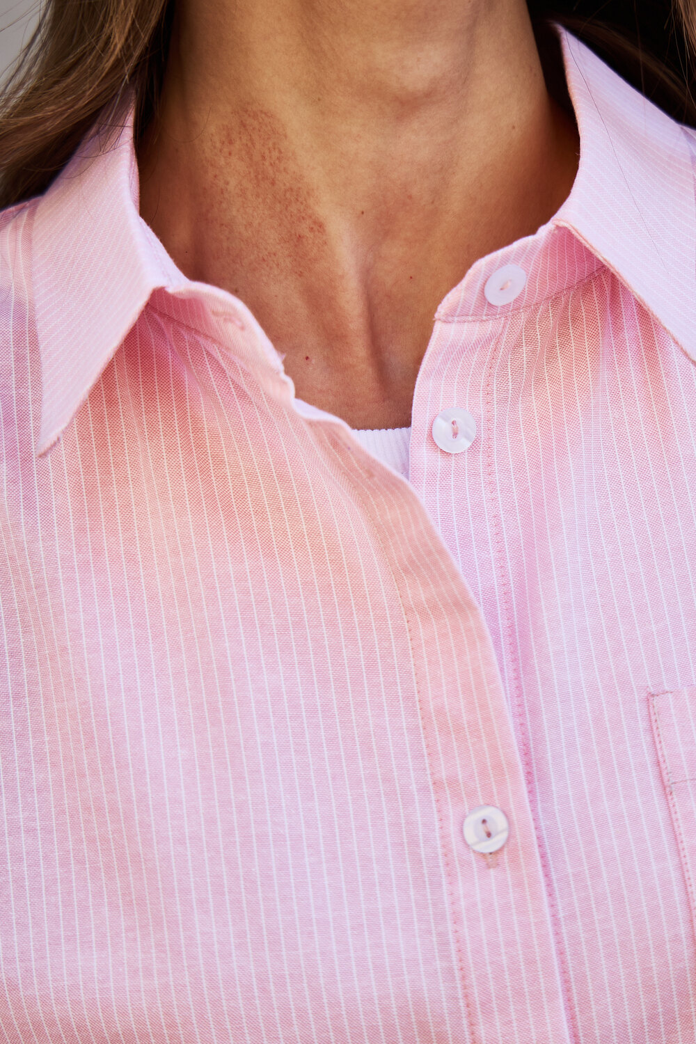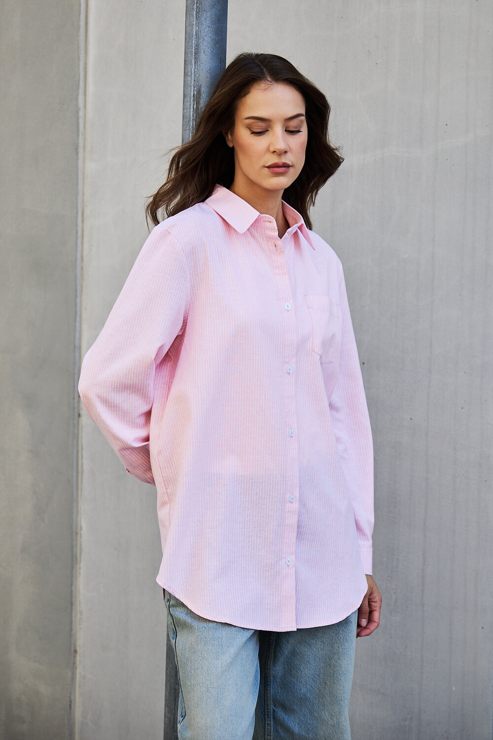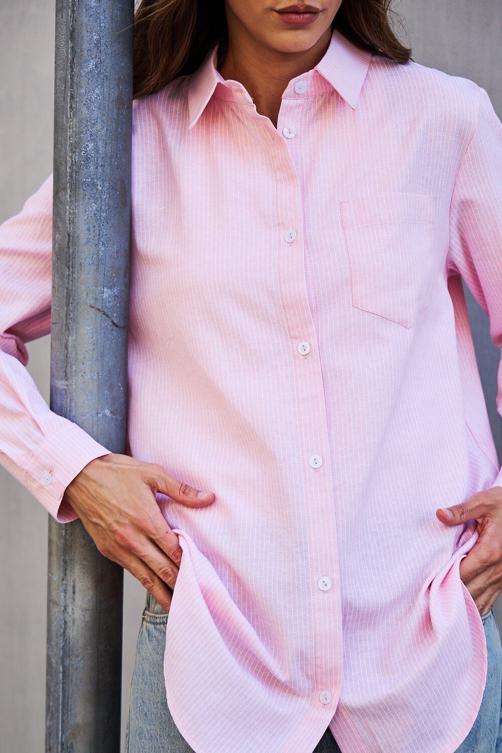 Ваш идеальный весенний образ начинается с нее: женская рубашка в полоску. Эта базовая модель из натурального хлопка – настоящее воплощение комфорта и стиля. Созданная для вашего удобства: прямой рукав и классический воротник дарят ощущение легкости и свободы движений на протяжении всего дня. Безупречная универсальность: модная блузка с легкостью адаптируется к любому настроению и событию – от расслабленных повседневных прогулок до строгих офисных будней. Изысканность в каждой детали: удлиненный силуэт, элегантный длинный рукав и широкий воротник придают этой полосатой рубашке особый шарм. Она станет вашим верным спутником на романтических свиданиях, обеспечит комфорт в школе и подчеркнет профессионализм в офисе. Легкость и дышащие свойства хлопка гарантируют непревзойденное ощущение свежести.