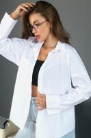 Базовая женская рубашка свободного кроя с классическим отложным воротником и длинными рукавами — универсальная вещь, которая подойдёт для офиса, школы, университета, деловых мероприятий, повседневной носки и прогулок. Лаконичный дизайн и современный силуэт делают её идеальным вариантом для женщин и девушек любого возраста, роста и комплекции. Свободная посадка в стиле оверсайз обеспечивает комфорт в течение дня, не стесняет движений и подчёркивает актуальный минимализм в образе. Отлично подойдёт подросткам, взрослым женщинам, а также беременным и обладательницам фигуры плюс-сайз. Удлинённая рубашка легко сочетается с джинсами, классическими брюками, юбками, жилетами, трикотажными изделиями и верхней одеждой. Можно носить как самостоятельно, так и поверх майки, футболки или топа — в качестве лёгкой накидки или второго слоя. Актуальна для школьной формы, офисных будней, капсульного гардероба, фотосессий, путешествий и стильных городских образов. Подходит на все сезоны: весна, лето, осень и зима. Рубашка выполнена из 100% полиэстера — ткань мягкая на ощупь, приятна к телу и сохраняет форму благодаря лёгкой эластичности. Не мнётся так сильно, как чистый хлопок, хорошо садится по фигуре и остаётся аккуратной в течение дня. Застёжка на пуговицы, классические манжеты и строгий ворот делают рубашку идеальной для повседневной и деловой стилизации. Этот вариант легко адаптировать под любой случай — от учёбы до отдыха. Универсальная длина и прямой крой подойдут как для миниатюрных, так и для высоких девушек.
