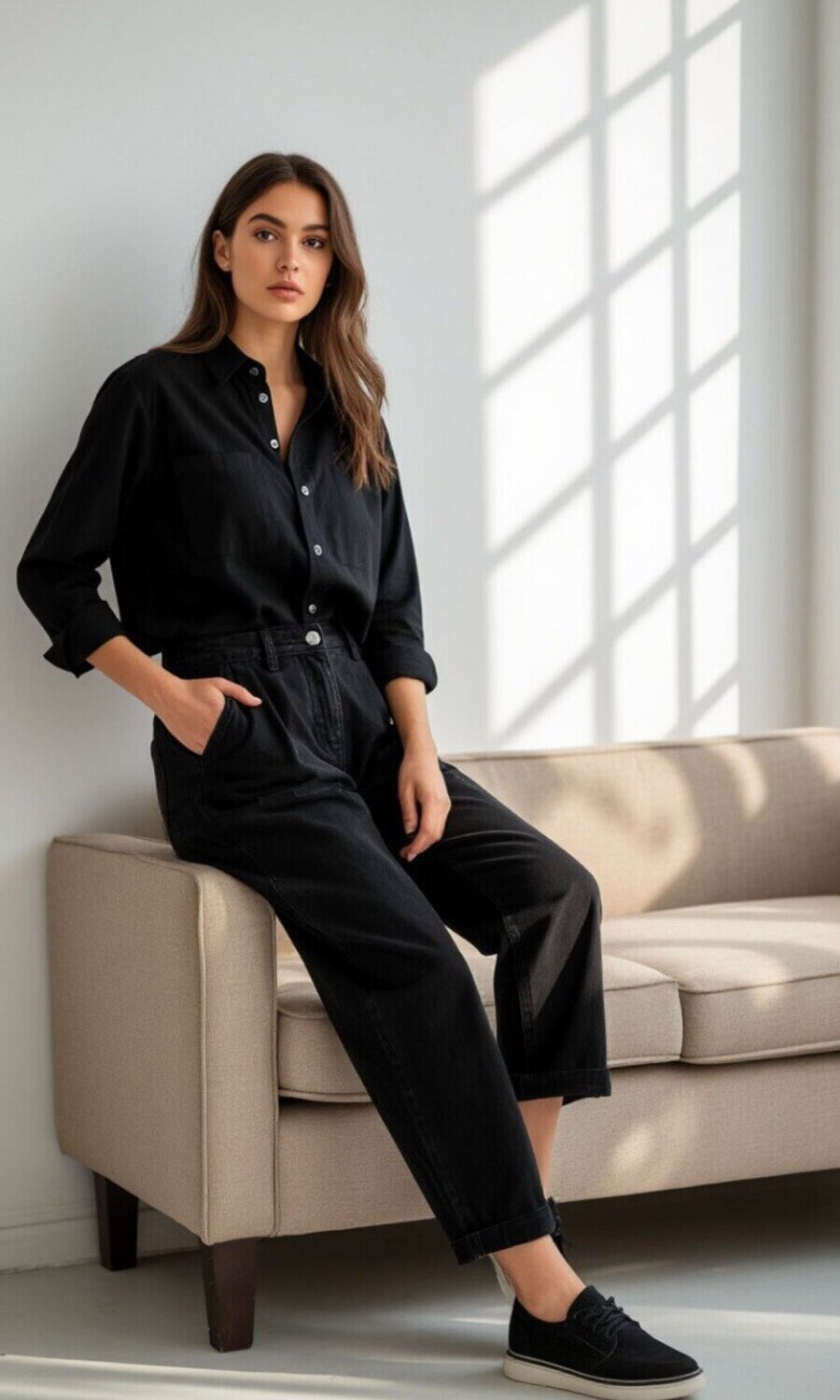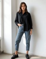 Базовая женская рубашка свободного кроя с классическим отложным воротником и длинными рукавами — универсальная вещь, которая подойдёт для офиса, школы, университета, деловых мероприятий, повседневной носки и прогулок. Лаконичный дизайн и современный силуэт делают её идеальным вариантом для женщин и девушек любого возраста, роста и комплекции. Свободная посадка в стиле оверсайз обеспечивает комфорт в течение дня, не стесняет движений и подчёркивает актуальный минимализм в образе. Отлично подойдёт подросткам, взрослым женщинам, а также беременным и обладательницам фигуры плюс-сайз. Удлинённая рубашка легко сочетается с джинсами, классическими брюками, юбками, жилетами, трикотажными изделиями и верхней одеждой. Можно носить как самостоятельно, так и поверх майки, футболки или топа — в качестве лёгкой накидки или второго слоя. Актуальна для школьной формы, офисных будней, капсульного гардероба, фотосессий, путешествий и стильных городских образов. Подходит на все сезоны: весна, лето, осень и зима. Рубашка выполнена из 100% полиэстера — ткань мягкая на ощупь, приятна к телу и сохраняет форму благодаря лёгкой эластичности. Не мнётся так сильно, как чистый хлопок, хорошо садится по фигуре и остаётся аккуратной в течение дня. Застёжка на пуговицы, классические манжеты и строгий ворот делают рубашку идеальной для повседневной и деловой стилизации. Этот вариант легко адаптировать под любой случай — от учёбы до отдыха. Универсальная длина и прямой крой подойдут как для миниатюрных, так и для высоких девушек.