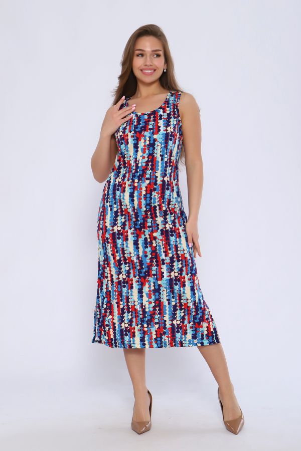 Сарафан полуприлегающего силуэта с двумя разрезами по бокам. Комфортен для повседневной носки.