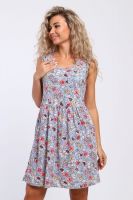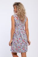 Сарафан с юбкой на сборке. Полочка и спинка приталенные с отрезными бочками. V - образный вырез горловины. Карманы в боковых швах.
