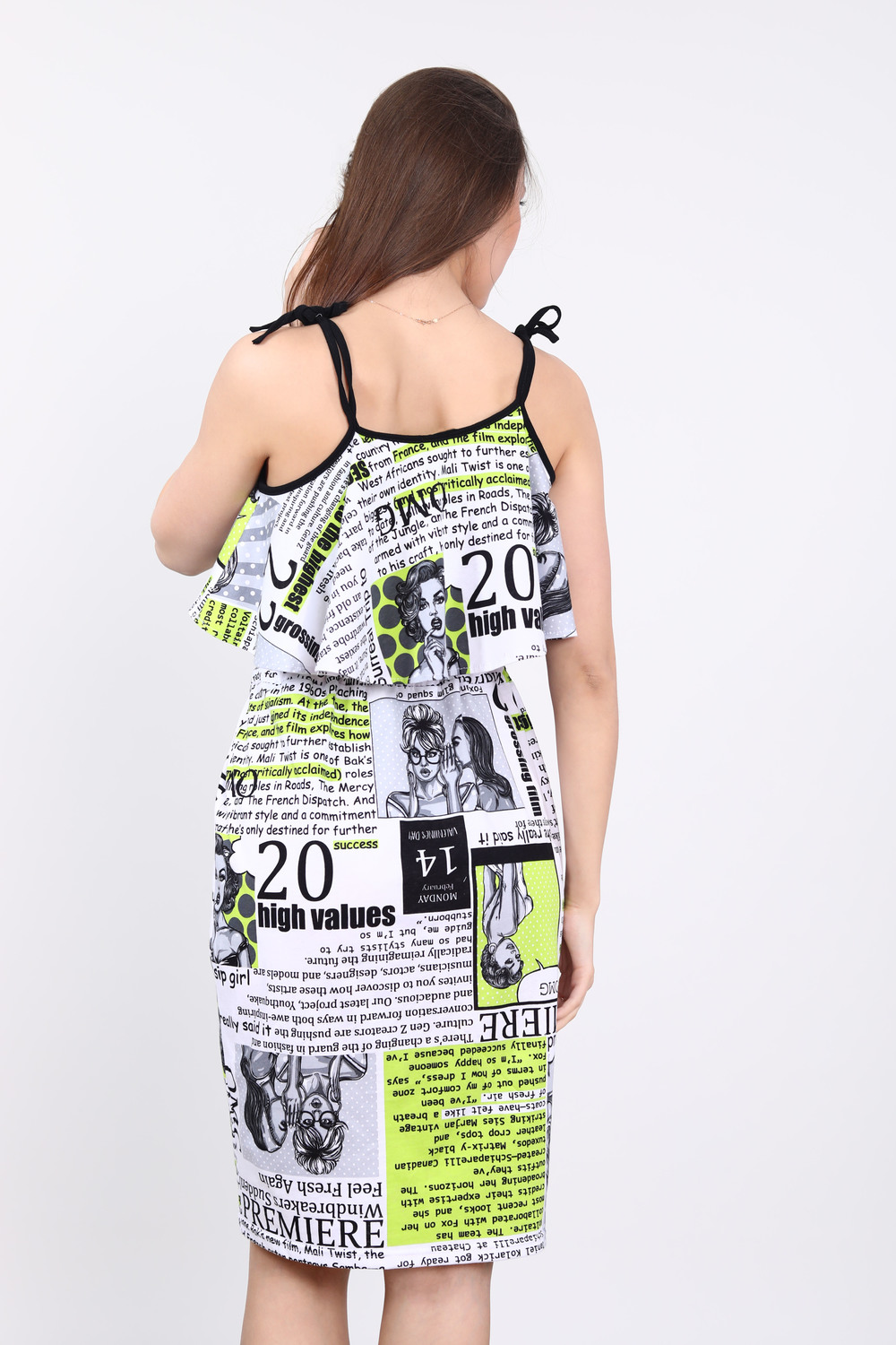 Сарафан женский с двойными бретелями. Данная модель выполнена из трикотажного полотна кулирка (хлопок 100%). Полочка и спинка отрезная, в области талии присутствует кулиска. В виде декоративного элемента имеется волан как на полочке, так и на спинке. Окантовка на бретельке и шнурок для кулиски выполнены из трикотажного полотна кулирка. Отличная модель подходит для отпуска и прогулок в жаркую летнюю погоду.