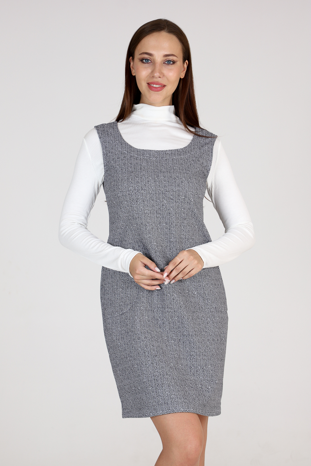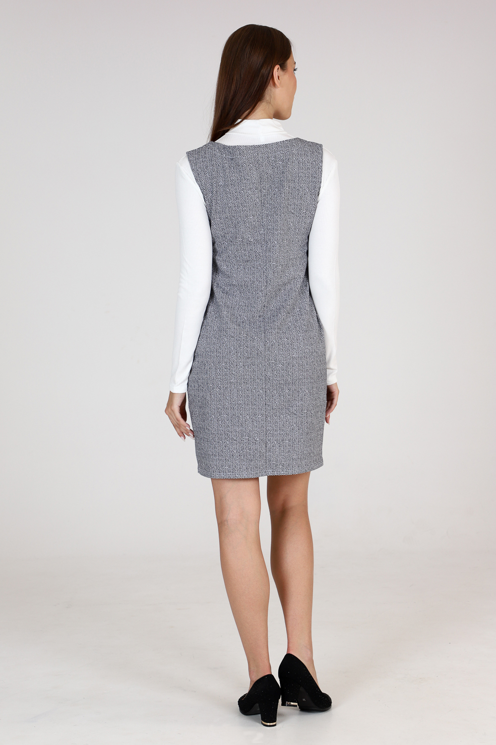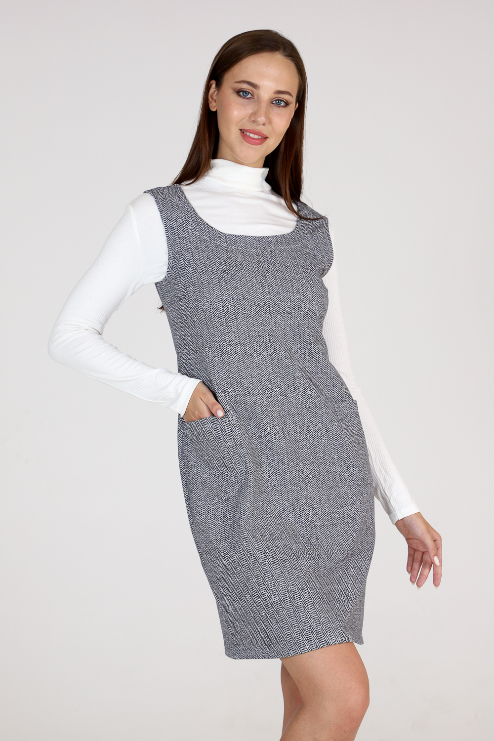 Стильный сарафан прилегающего силуэта с накладными карманами. Универсальная вещь в вашем гардеробе, наденьте сарафан с блузой или водолазкой, и ваш образ изменится. Комфортная в движении и приятная к телу ткань не мнётся и хорошо держит форму. Классические расцветки: яркие и эффектные "гусиные лапки"и благородная "ёлочка" будут соответствовать дресс-коду любой компании.