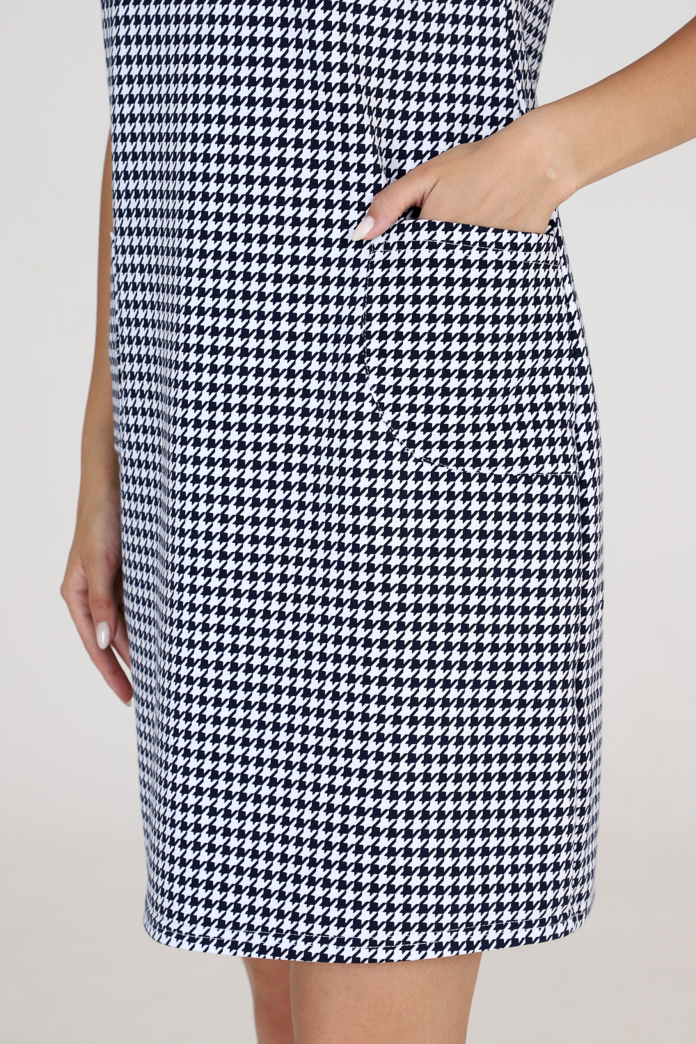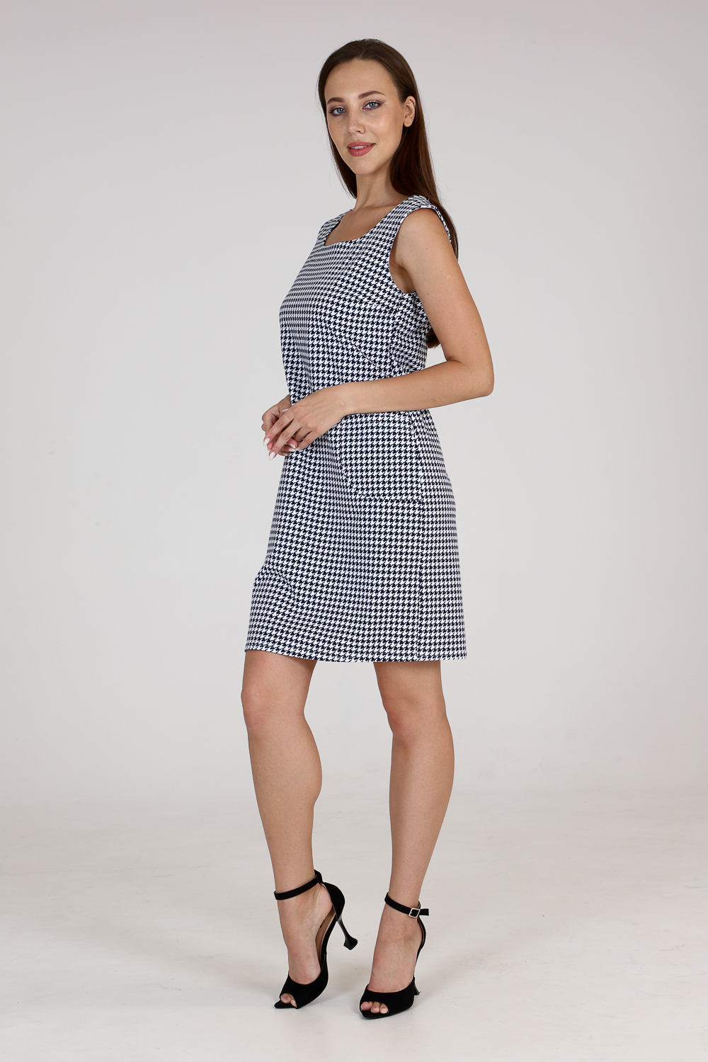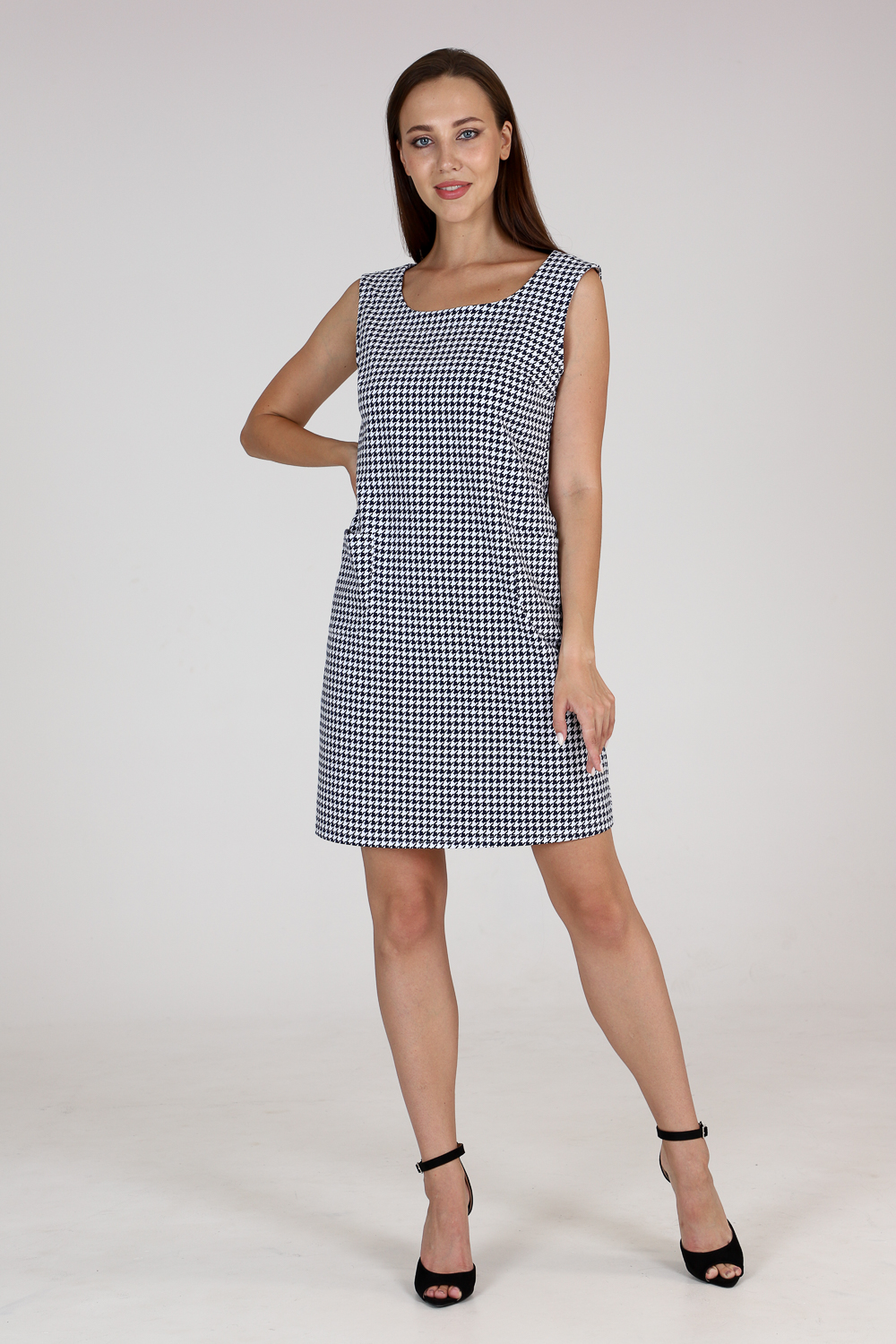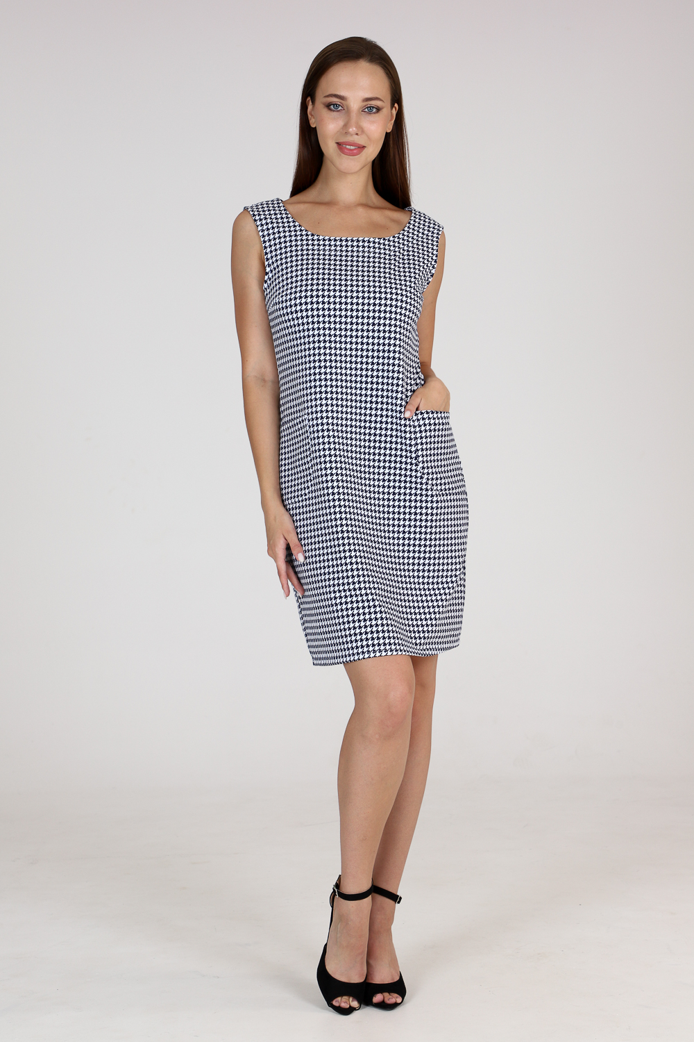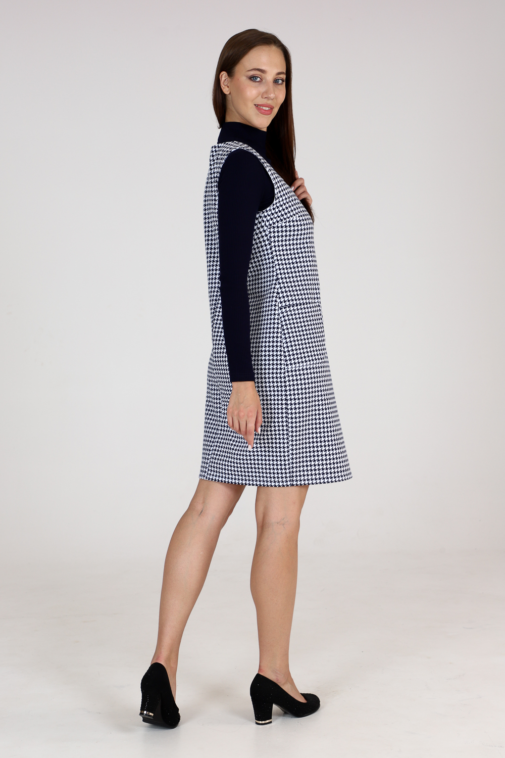 Стильный сарафан прилегающего силуэта с накладными карманами. Универсальная вещь в вашем гардеробе, наденьте сарафан с блузой или водолазкой, и ваш образ изменится. Комфортная в движении и приятная к телу ткань не мнётся и хорошо держит форму. Классические расцветки: яркие и эффектные "гусиные лапки"и благородная "ёлочка" будут соответствовать дресс-коду любой компании.