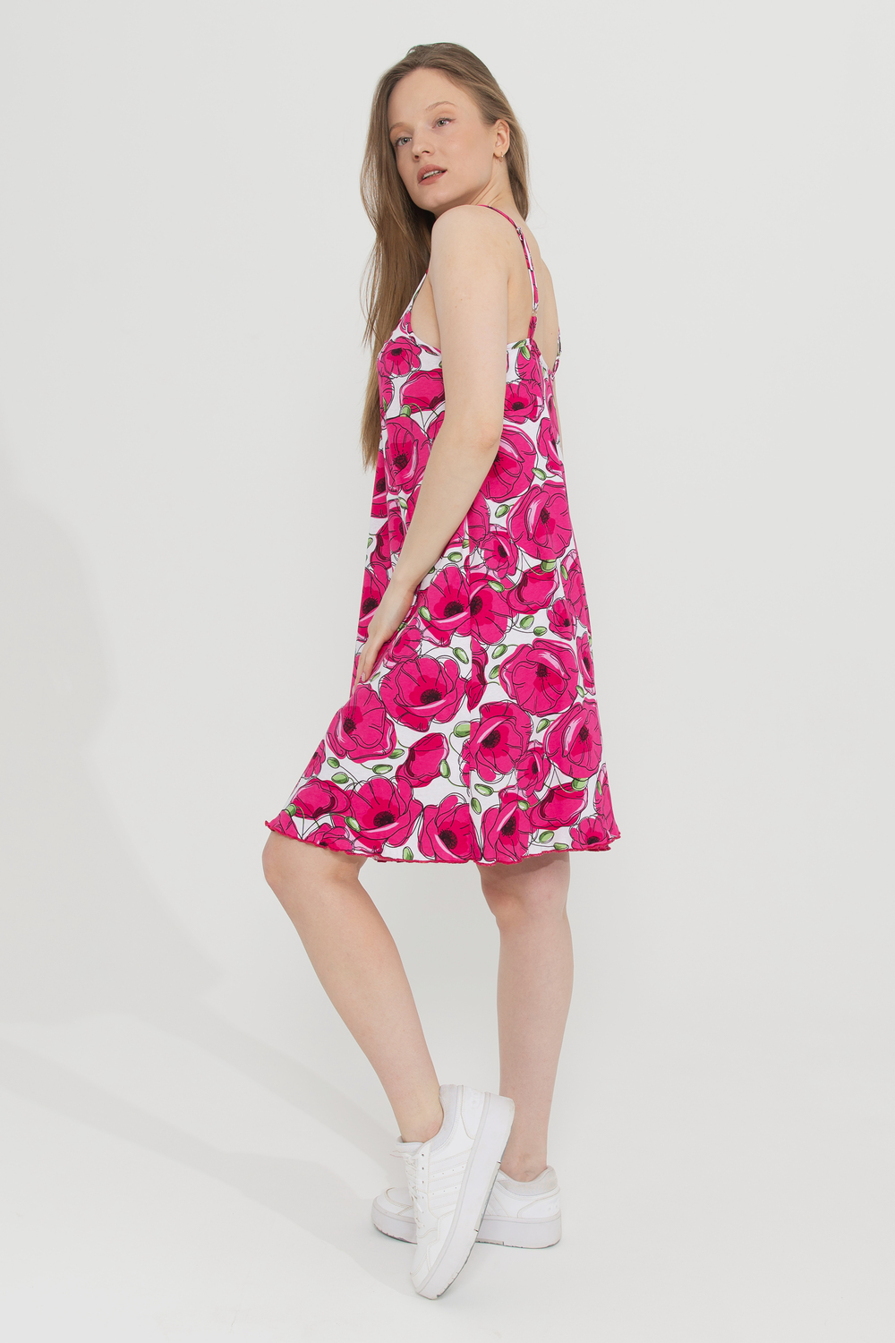 Летний сарафан свободного расклёшенного силуэта, лёгкий и озорной отлично подойдет для жаркой погоды. В нём вы будете чувствовать себя вне всяких ограничений, ведь он совершенно не сковывает движения! Яркие расцветки, лаконичный фасон, аккуратная сборка на груди - всё это создаёт нежный и приятный образ. Тонкие бретельки, регулируемые по длине, помогают сделать женскую фигуру ещё более хрупкой и изящной. В этом сарафане вы будете прекрасно смотреться на отдыхе, он незаменим в отпуске и удобен в жару в городе, одевайте его на пляж или для прогулок в парке.