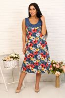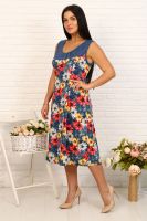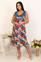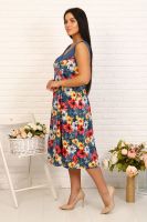 Яркий летний сарафан из кулирки 100% хлопок. По переду и сзади кокетка, сарафан рельефный, широкие бретели. Длина ниже колена