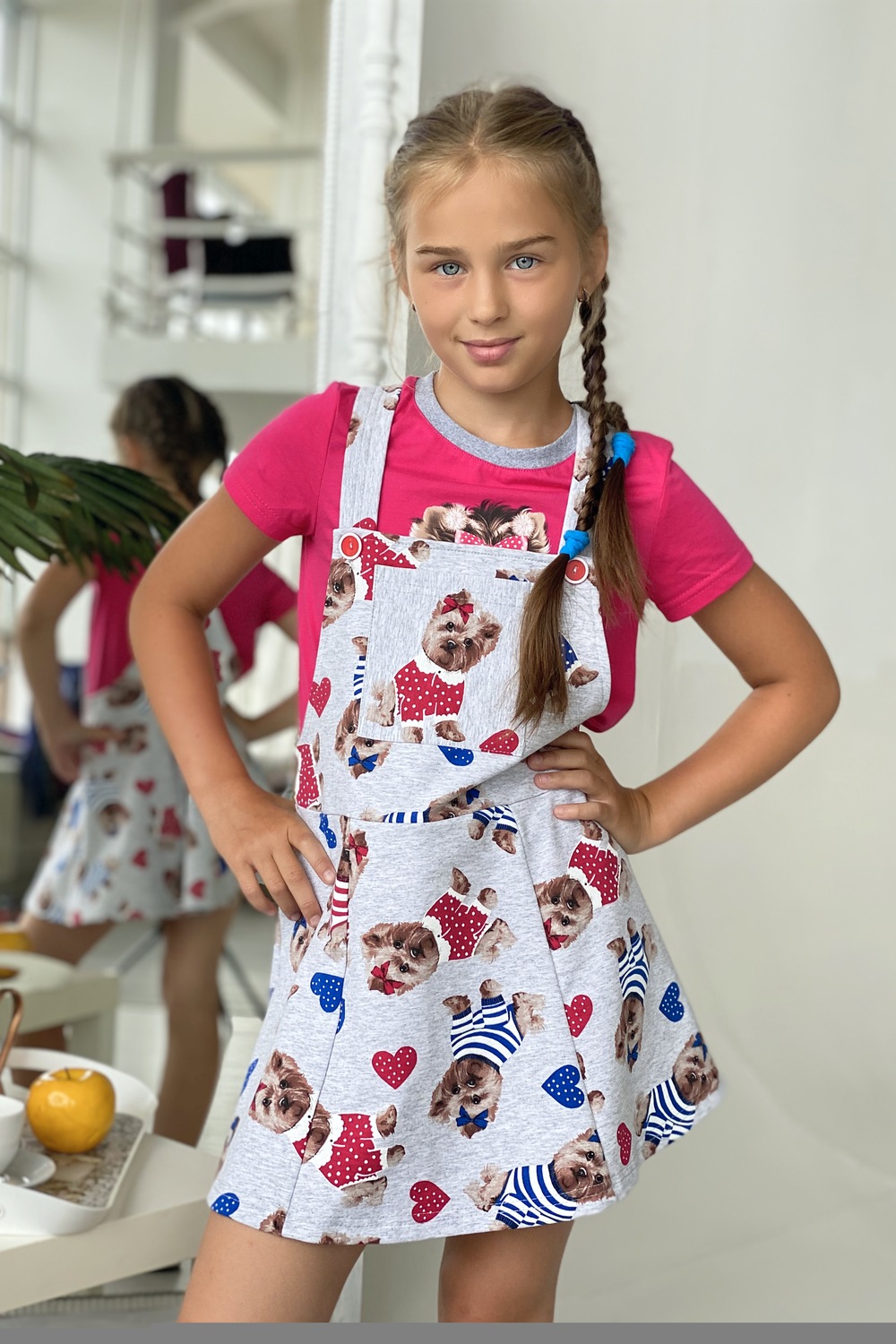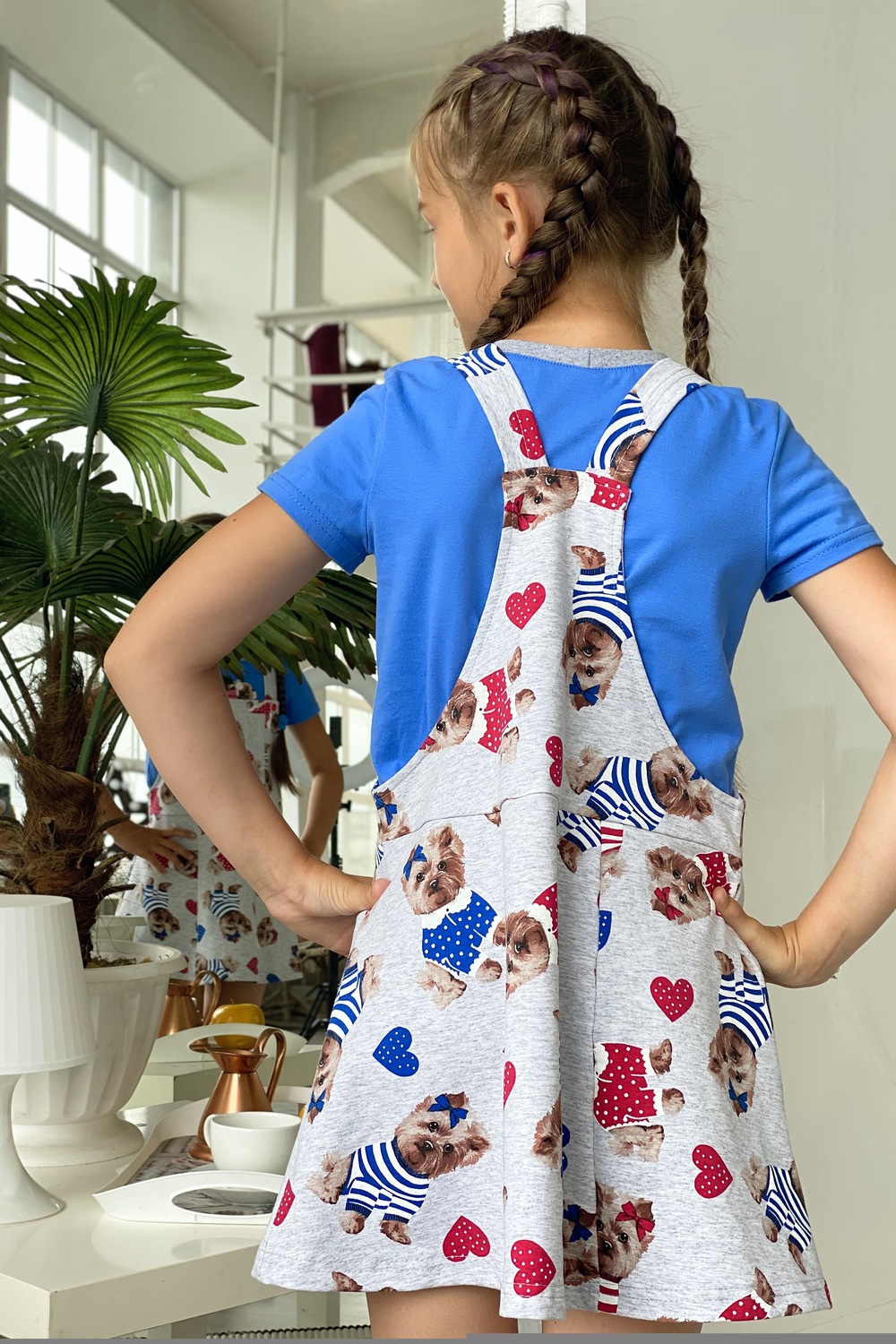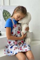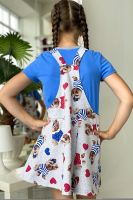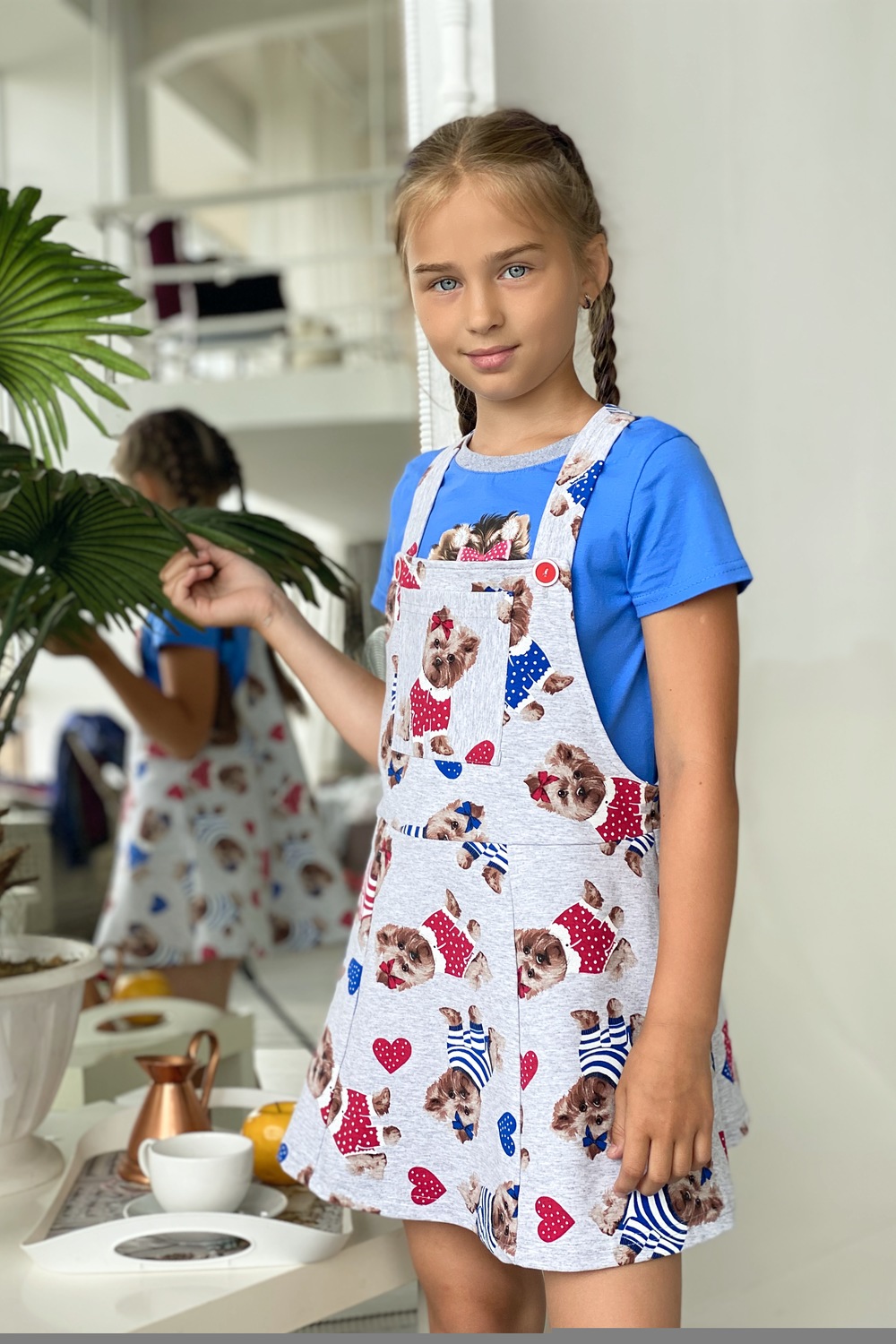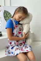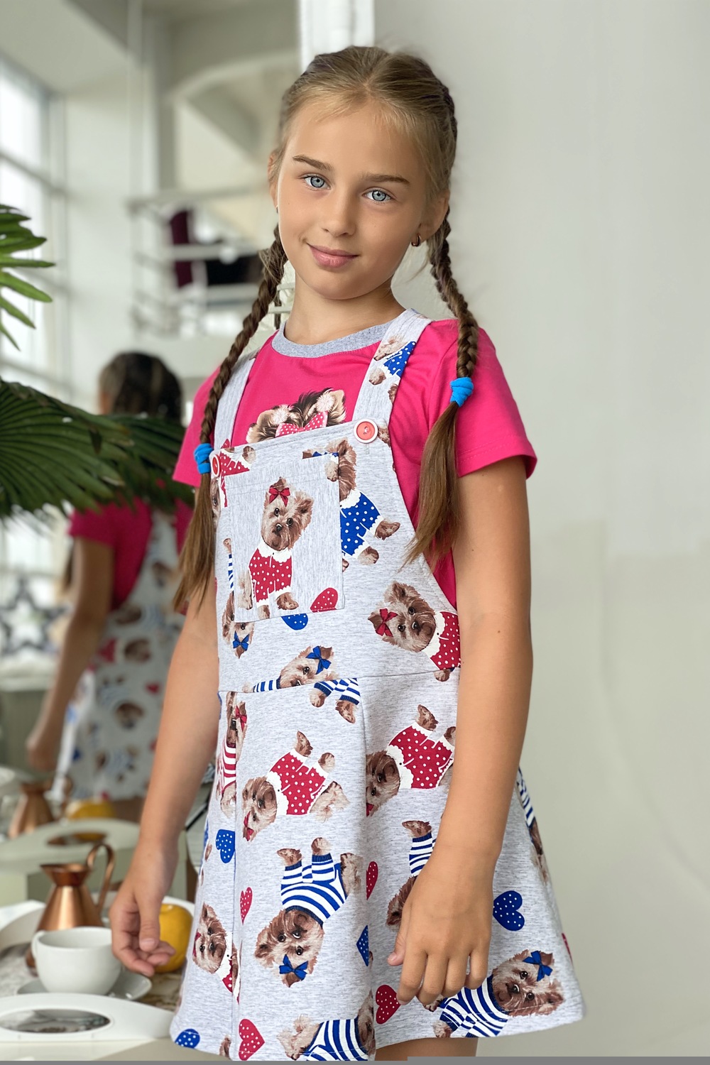 Сарафан детский на бретелях с пуговками, длиной выше колена, юбка расклешена, на полочке кармашек.