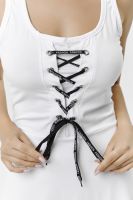Сарафан женский приталенного силуэта, полочка оформлена люверсами с декоративным шнурком.