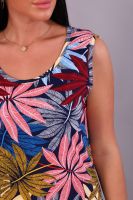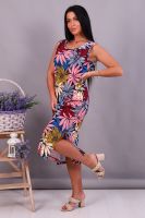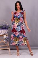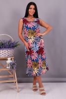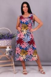 Женское платье-сарафан прямого силуэта из трикотажного полотна (100% хлопок). Горловина и пройма отделана окантовочной беей в цвет изделия. Внизу по боковым швам разрезы. Длина изделия ниже колена. Удобный сарафан, приятный к телу, не стесняет движения, подойдет беременным. Яркие стойкие цвета ткани. Большие размеры широкий размерный ряд 44-62. Для дома и дачи, для отдыха и прогулок, в отпуск, на море.
