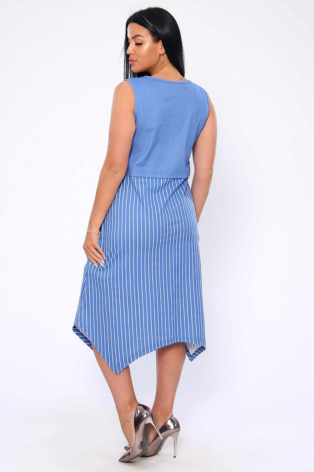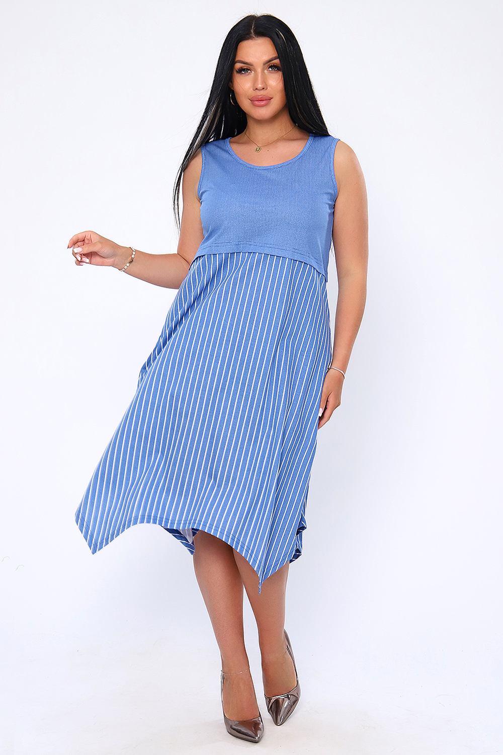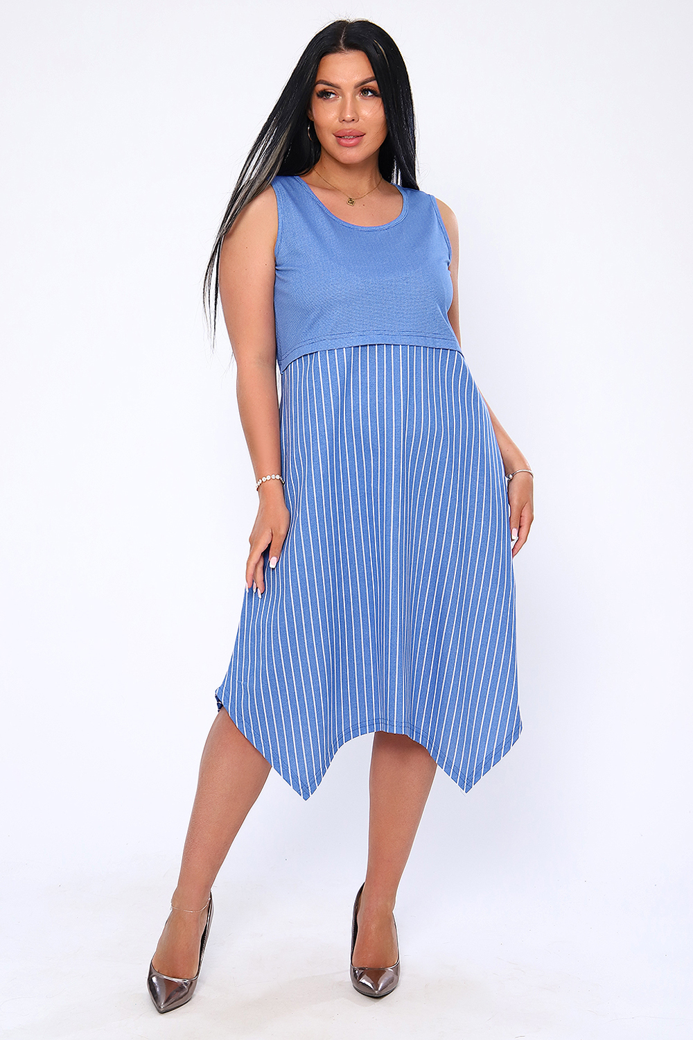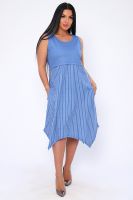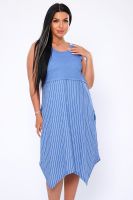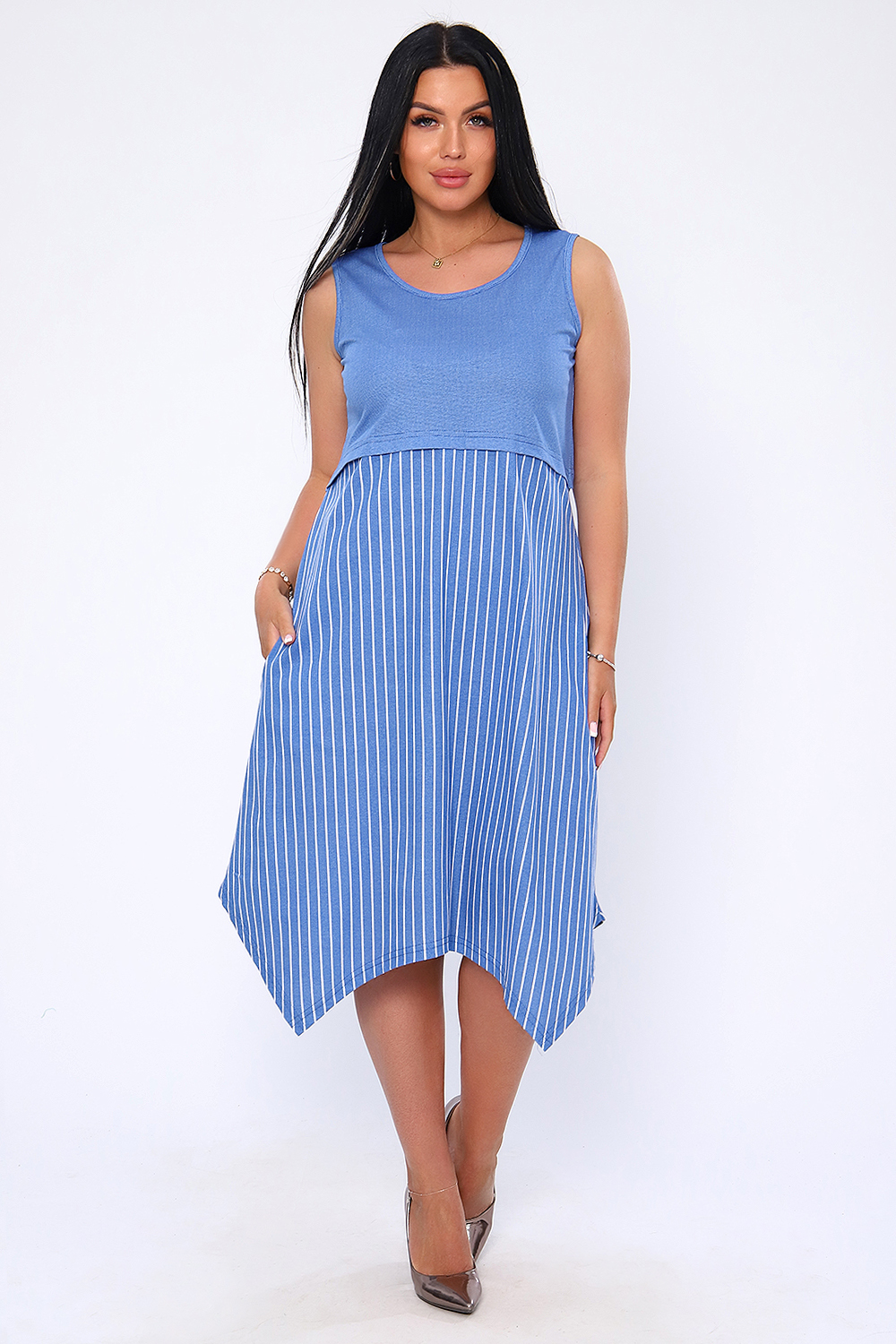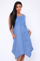 Женский летний сарафан - платье А - силуэта с завышенной талией и небольшой декоративной складкой на кокетке переда с боковыми карманами в шве. Низ изделия выполнен с угловыми вырезами. Сшит из трикотажного полотна, 100%-го хлопка, что позволяет телу дышать и чувствовать себя комфортно в жаркий день. Длина изделия ниже колена. Удобный сарафан, приятный к телу, не стесняет движения. Любителям носить одежду в обтяжку можно брать на размер меньше. Подойдет на любую фигуру, скроет недостатки. Отлично смотрится на беременных. Приятные и стойкие цвета ткани. Широкий размерный ряд 44-56. Для дома и дачи, для отдыха и прогулок, в отпуск, на море. Отличный подарок любимым девушкам и женщинам!
