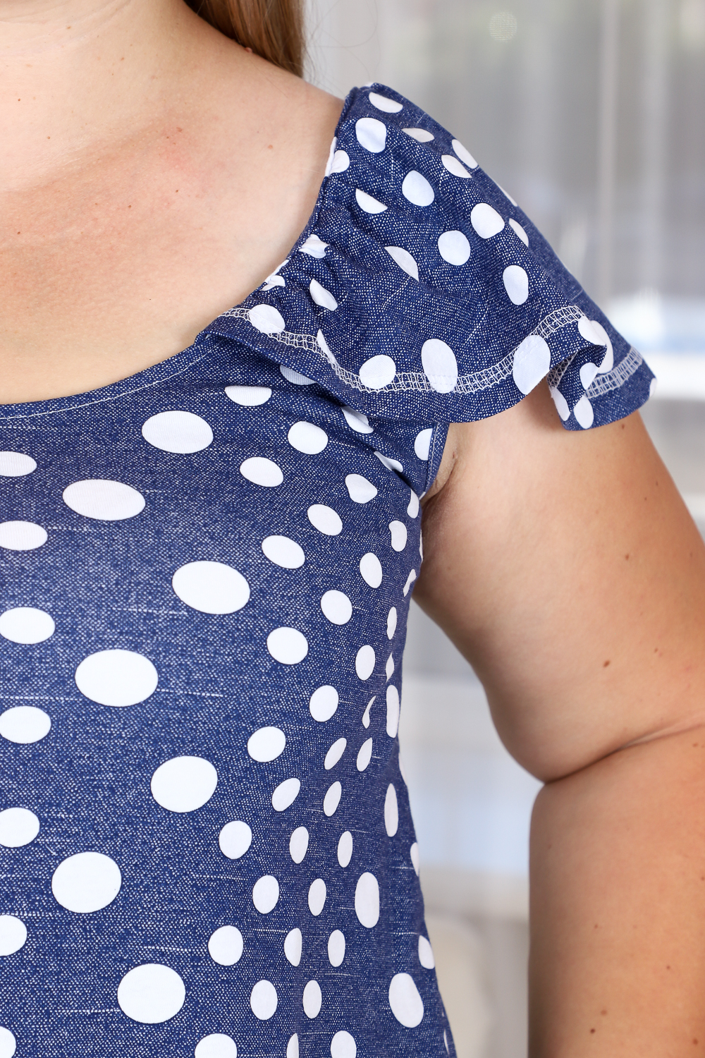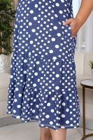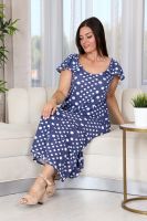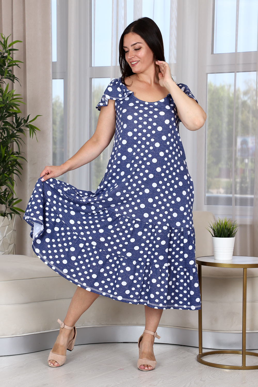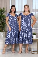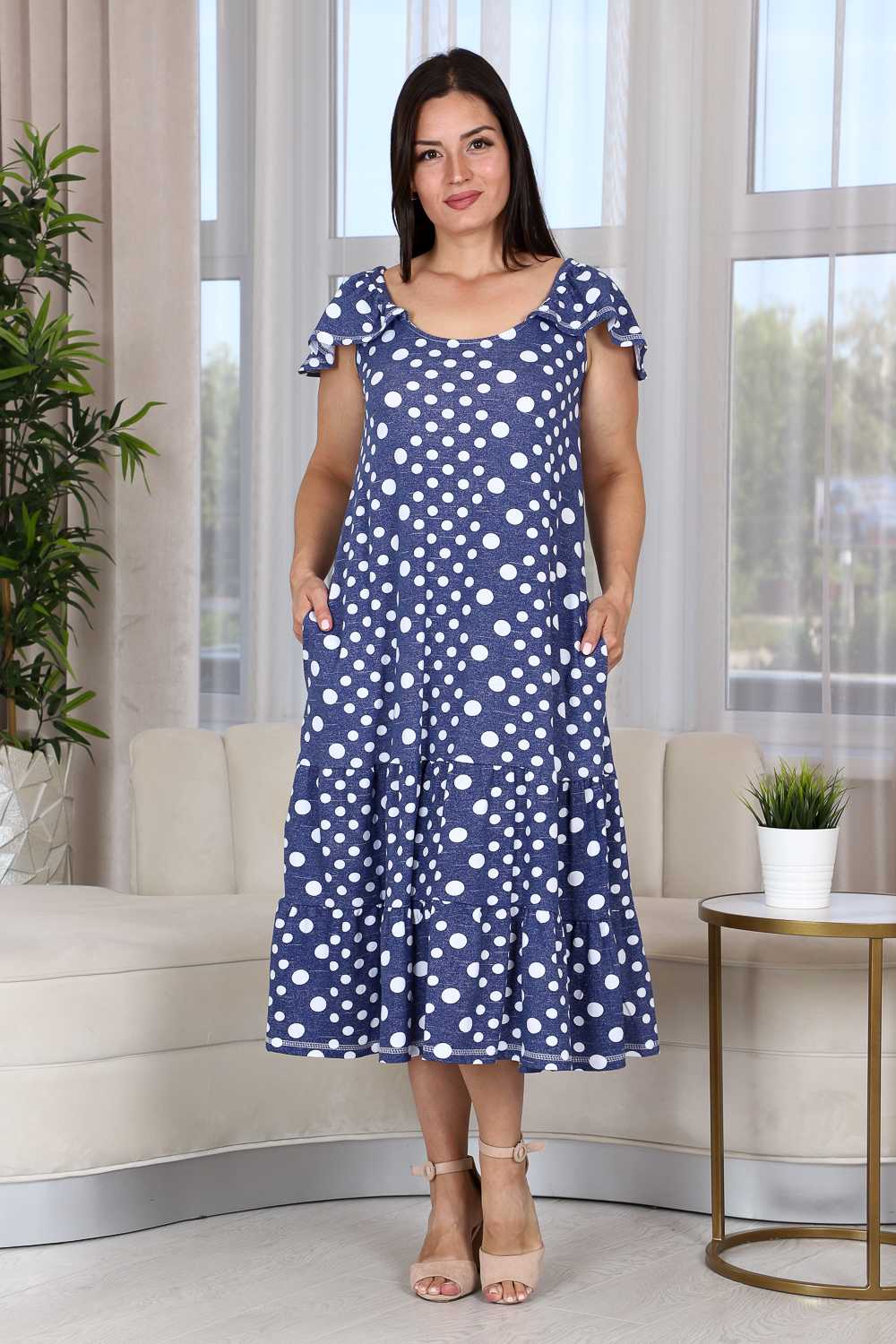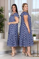 Сарафан женский, расширенный к низу. На плечах рукава -"крылышки". Низ сарафана заканчивается двумя ярусами с небольшой сборкой. В боковых швах внутренние карманы.