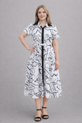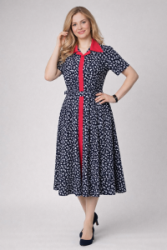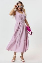 Сарафан выполнен из 100 % хлопка и поэтому легкий, но не просвечивает. Удобный, на каждый день, полуприлегающего силуэта, длинною ниже колена. Талия подчеркнута декоративным поясом, который идет в комплекте.