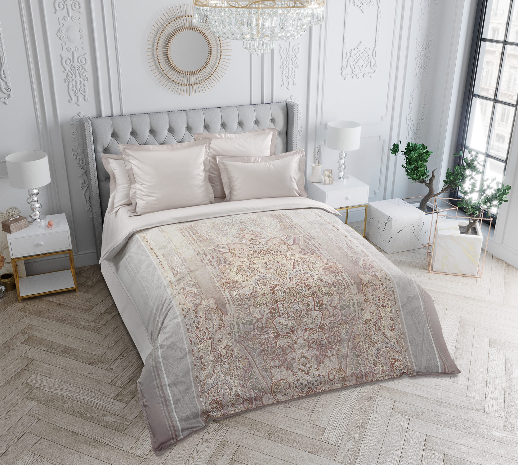 Комплект постельного белья мако-сатина из длинно-волокнистого пакистанского хлопка высшего качества. Сатиновое плетение придает ткани мягкость, шелковистость, эластичность и благородный блеск. Плотность 300ТС. Чем выше плотность нитей, тем ткань тактильно шелковистее. Состав 100% хлопок. Дизайн исполнен в уникальной технике монораппорт: Если рисунок обычной ткани повторяется с большей или меньшей частотой, то дизайны пододеяльников Legends представляют собой единое художественное полотно. В коллекции Legends вы найдете утонченные детали премиального постельного белья. Пододеяльник имеет скрытую молнию со специальным карманом для бегунка, молния расположена снизу. Простыня бесшовная, без резинки, прошита с четырех сторон с имитацией евро-угла. Наволочки с широким запахом 25 см, клапан находится сбоку. Пододеяльник и наволочки декорированы ушками 5 см и плоским контрастным сатиновым кантом. Припуски швов скрыты внутри изделия. Строчка выполнена мелким стежком не более 3 мм, что обеспечивает повышенную прочность и эстетичное восприятие. Комплект упакован в подарочную коробку.
