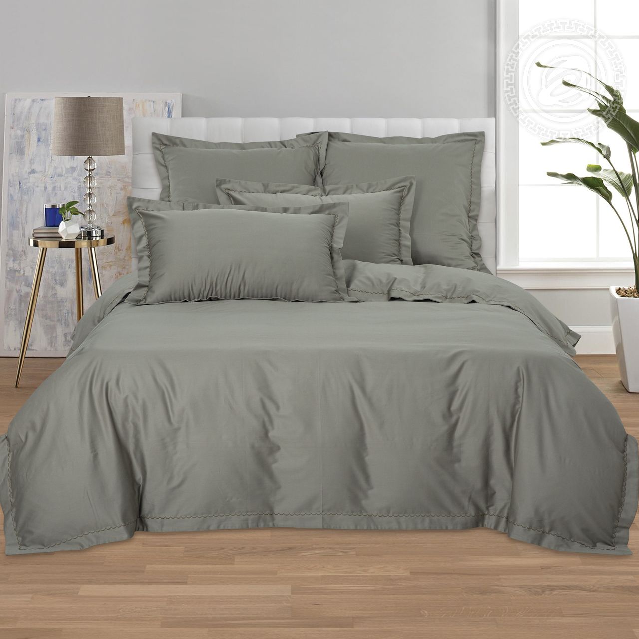 «Серо-зеленый» (Мако - сатин) постельное белье Евро