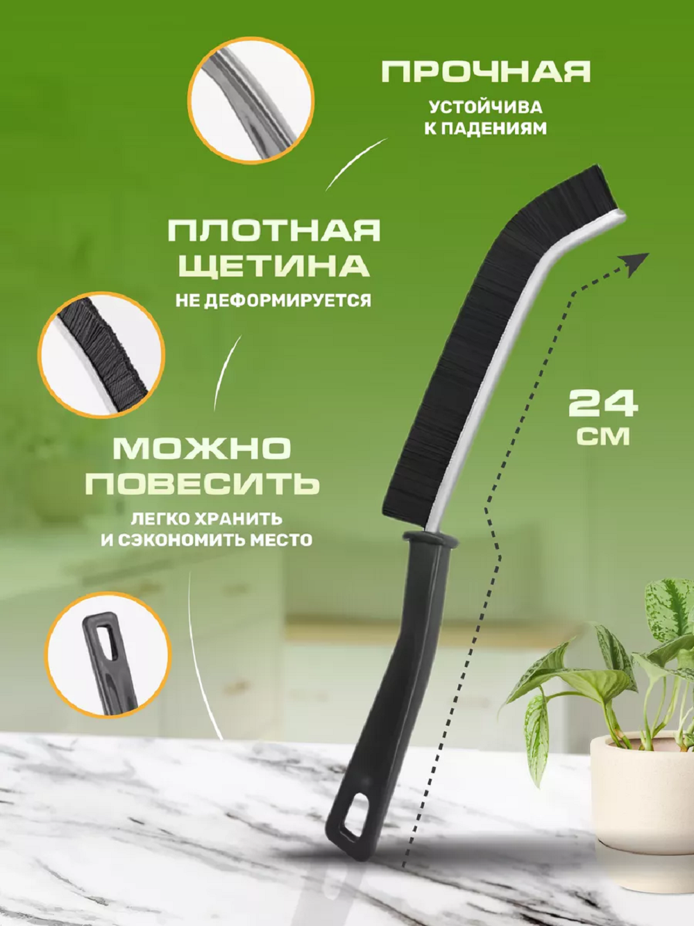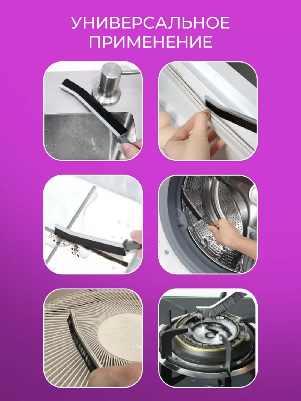 Сильный и надежный помощник в борьбе за чистоту дома – универсальные щетки для уборки. Ее тонкая и изогнутая форма, позволяет легко добраться до труднодоступных мест, таких какмежплиточныешвы, затирки, различной сантехники в ванной, углов и примыканий. Преимуществом щелевой щетки является надежный металлический каркас и жесткая щетина, которая позволяет удалять пыль, грязь, плесень с самых труднодоступныхмест - радиаторовотопления, батарей, стыков плитки, умывальника, душевой кабины. В мире хозяйственных товаров нет ничего более необходимого, чем— щетка для чистки. Она идеально подходит для чистки сантехники, душевой лейки, смесителей, стиральной машины. Так как щетка тонкая, всего 4 мм, ей очень удобно чистить душевой трап, сифон ванны и раковины, любые примыкания сантехнических изделий к полу или стене. Наступает весна или осень, у Вас есть — изогнутая щетка для мытья окон, которая пролезет в любую щель в оконной раме. Так же она подходит для пола, ей удобно чиститьшвы и фаску напольного покрытия. Будто магическим образом она очищает каждый уголок вашего жилища, не только туалета и ванной, но и кухню.