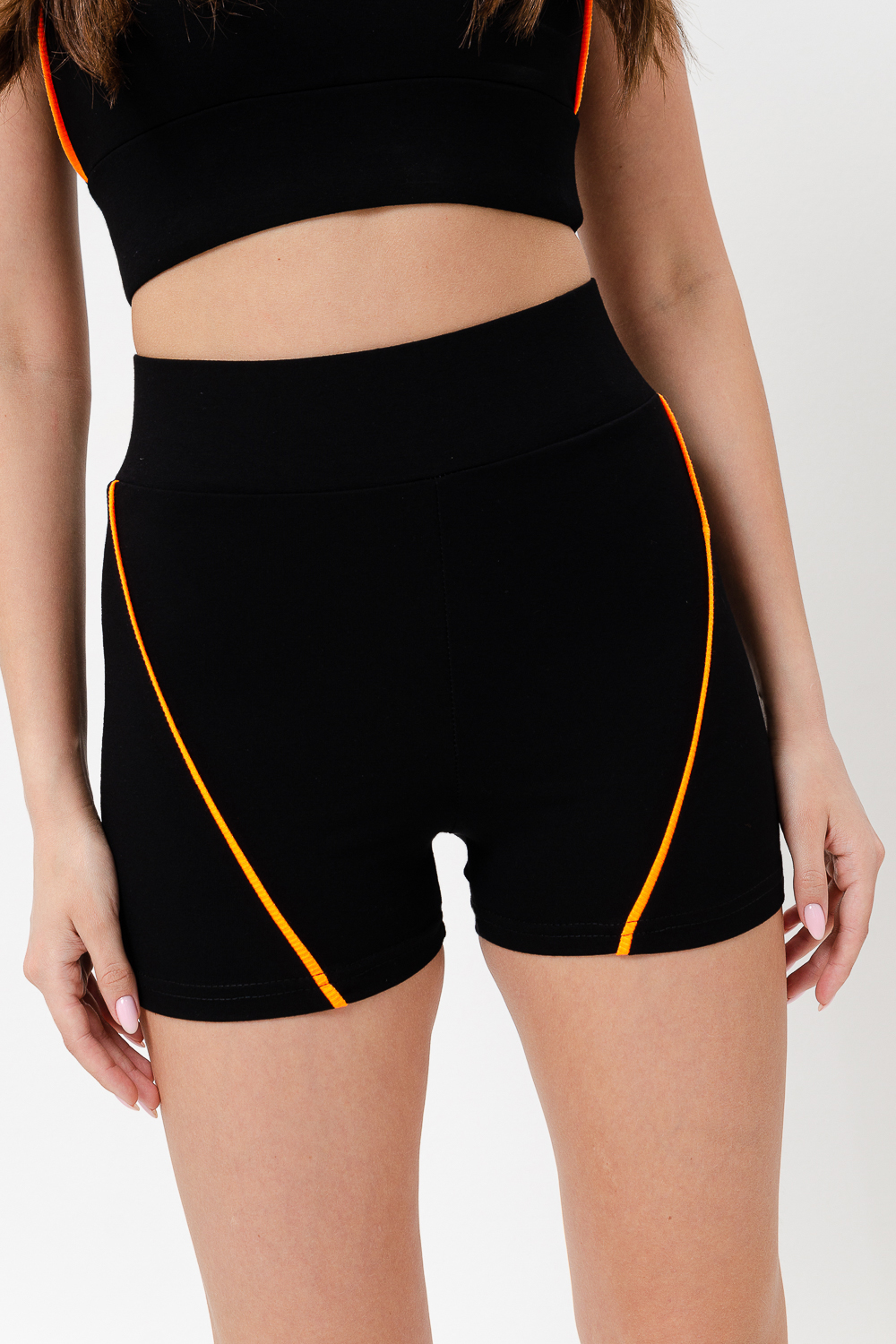 Шорты женские спортивные с ярким кантом и широкой эластичной резинкой на поясе.