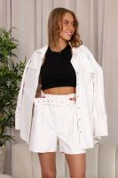 Шорты из эко-кожи с высокой посадкой, с карманами и ремнем в тон являются универсальной одеждой, поскольку их можно носить в любое время года. Их можно комбинировать с разными элементами гардероба, создавая роскошные дерзкие луки.