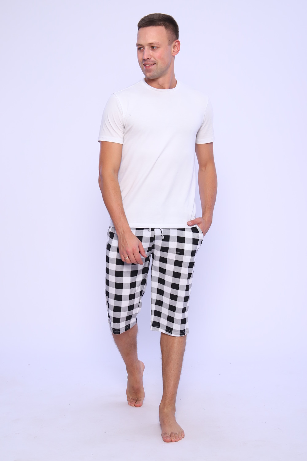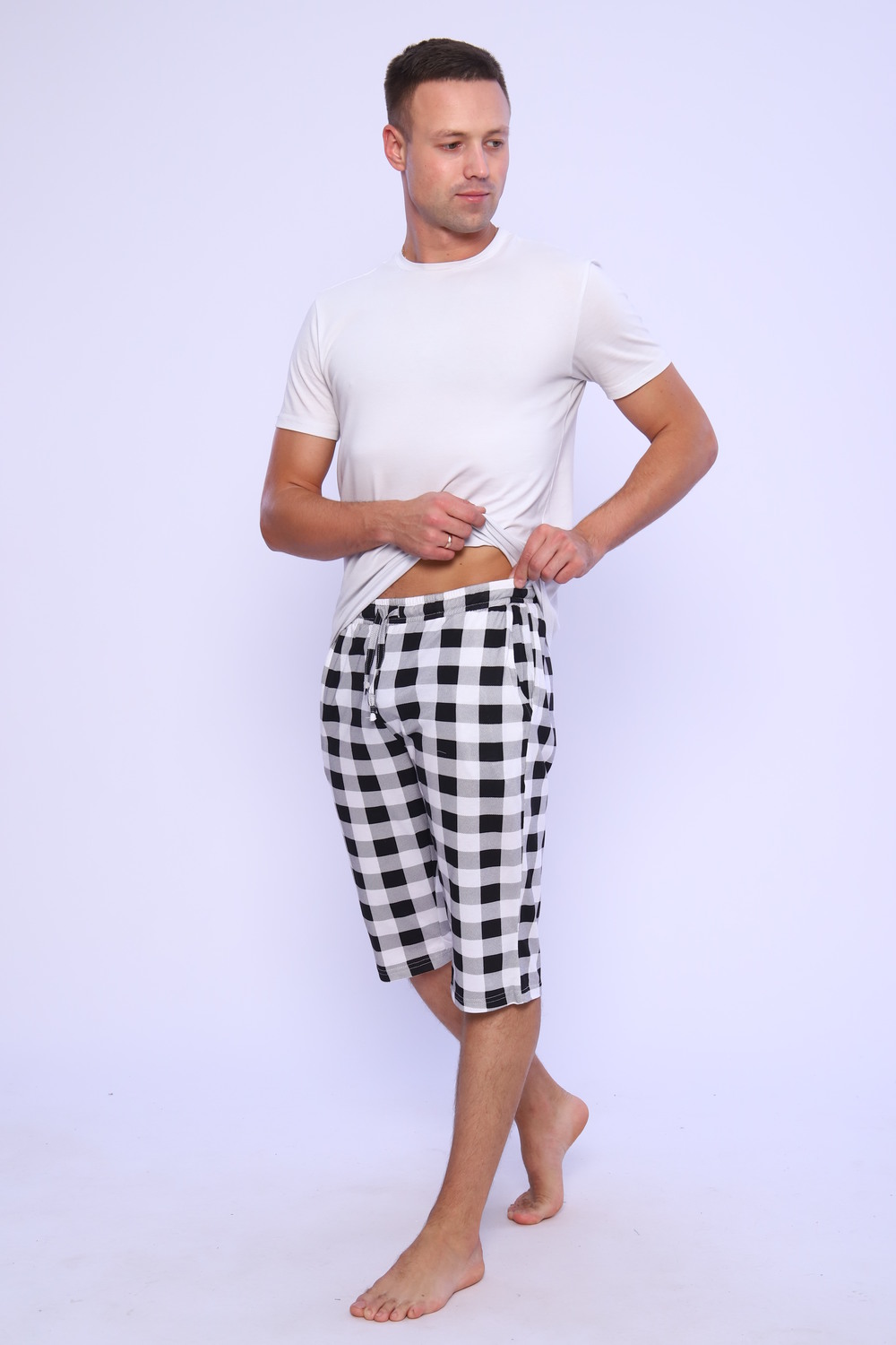 Мужские трикотажные шорты из 100% хлопка, натуральный состав полотна позволяет наслаждаться комфортной ноской долгое время. Свободный крой и удобная посадка обеспечивает максимальный комфорт, подходит для всех типов фигур. Пояс на широкой резинке. Бриджи имеют глубокие боковые карманы, которые так необходимы в повседневной жизни. Идеальный вариант для дома, прогулок, поездок на отдых, и отличный подарок.