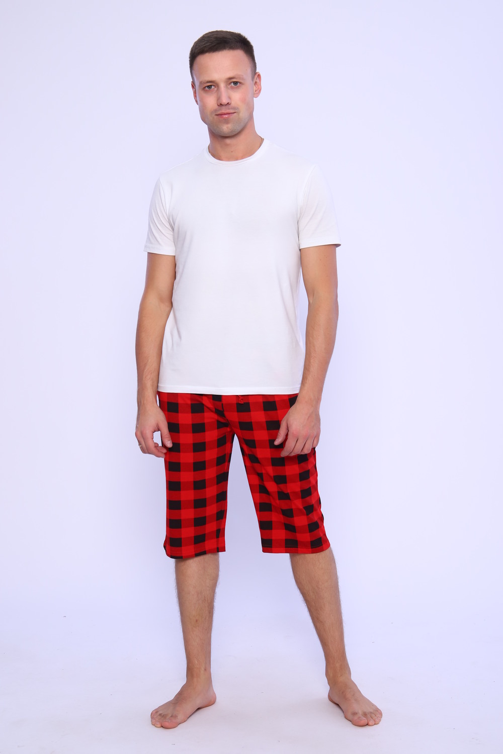 Мужские трикотажные шорты из 100% хлопка, натуральный состав полотна позволяет наслаждаться комфортной ноской долгое время. Свободный крой и удобная посадка обеспечивает максимальный комфорт, подходит для всех типов фигур. Пояс на широкой резинке. Бриджи имеют глубокие боковые карманы, которые так необходимы в повседневной жизни. Идеальный вариант для дома, прогулок, поездок на отдых, и отличный подарок.