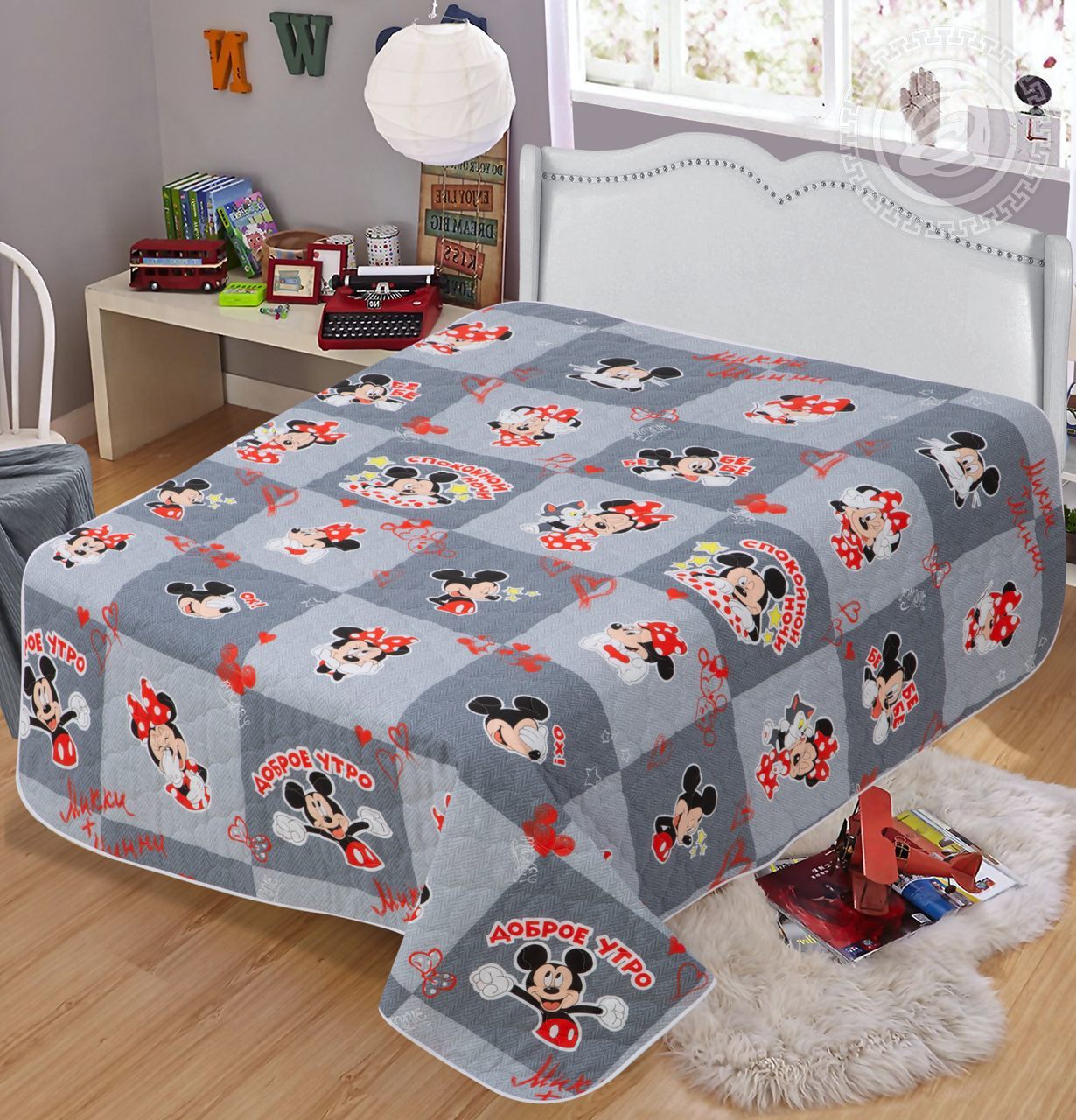 Всеми любимые эксклюзивные авторские дизайны из набивного поплина теперь могут украсить Вашу спальню в виде стеганого одеяла-покрывала. Изделия выполнены из 100% - хлопка не вызывают аллергии и безопасны для здоровья человека. Наполнитель из полиэфирного волокна отличается замечательными воздухопроницаемыми и теплоизоляционными свойствами. «Сладкая парочка» – красочный и забавный дизайн с известными героями. На покрывале персонажи любимых мультфильмов в окружении сердечек, звездочек и бантиков. Микки веселый и озорной, Минни милая и обаятельная. Наши мышки всегда готовы к невероятным приключениям и сказочным проделкам. Минни маус вызовет яркие эмоции у мальчишек и девчонок и подарит удивительные сны.