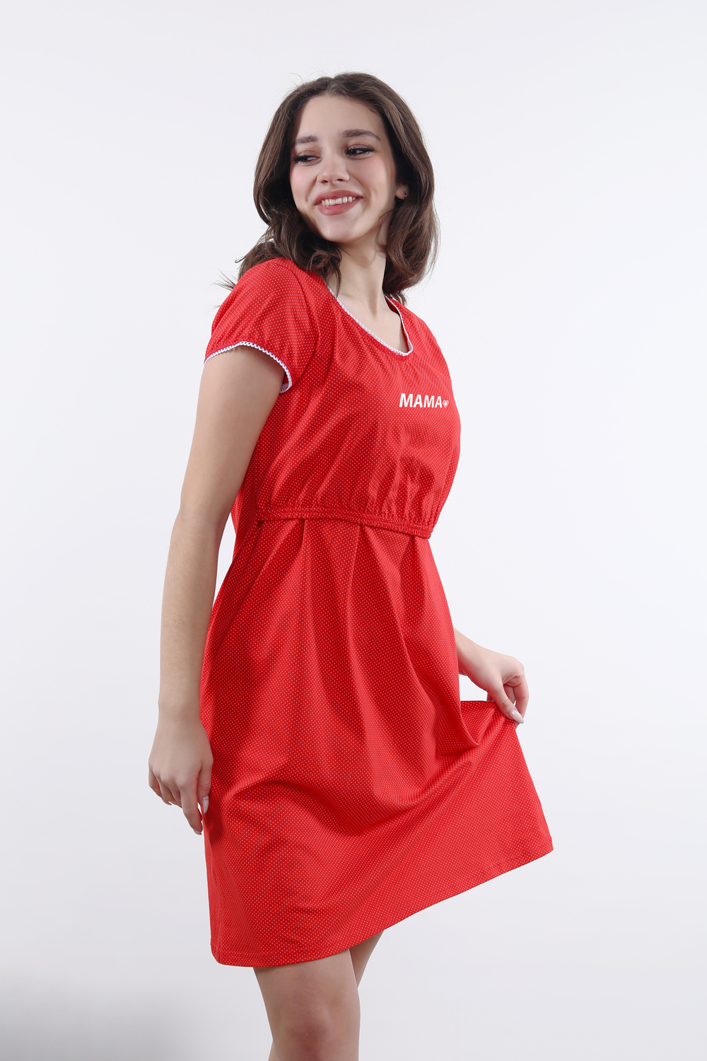 Сорочка женская с рукавом для беременных и кормящих. Данная модель выполнена из трикотажного полотна кулирка (хлопок 100%). Полочка состоит из двух частей, верхняя кокетка поднимается так, чтобы было удобно и без усилий покормить малыша. Отлично подходит для сна и отдыха дома.