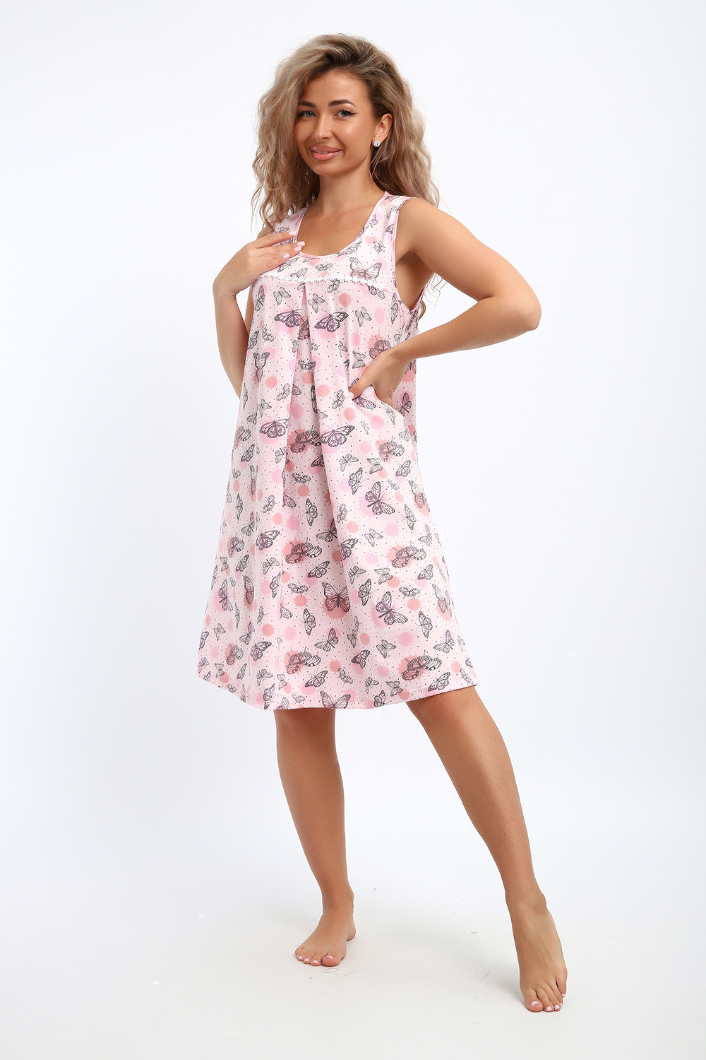 Сорочка свободного покроя маечyого фасона с кокеткой. По кокетке нашиты ромашки. Подходит для беременных.