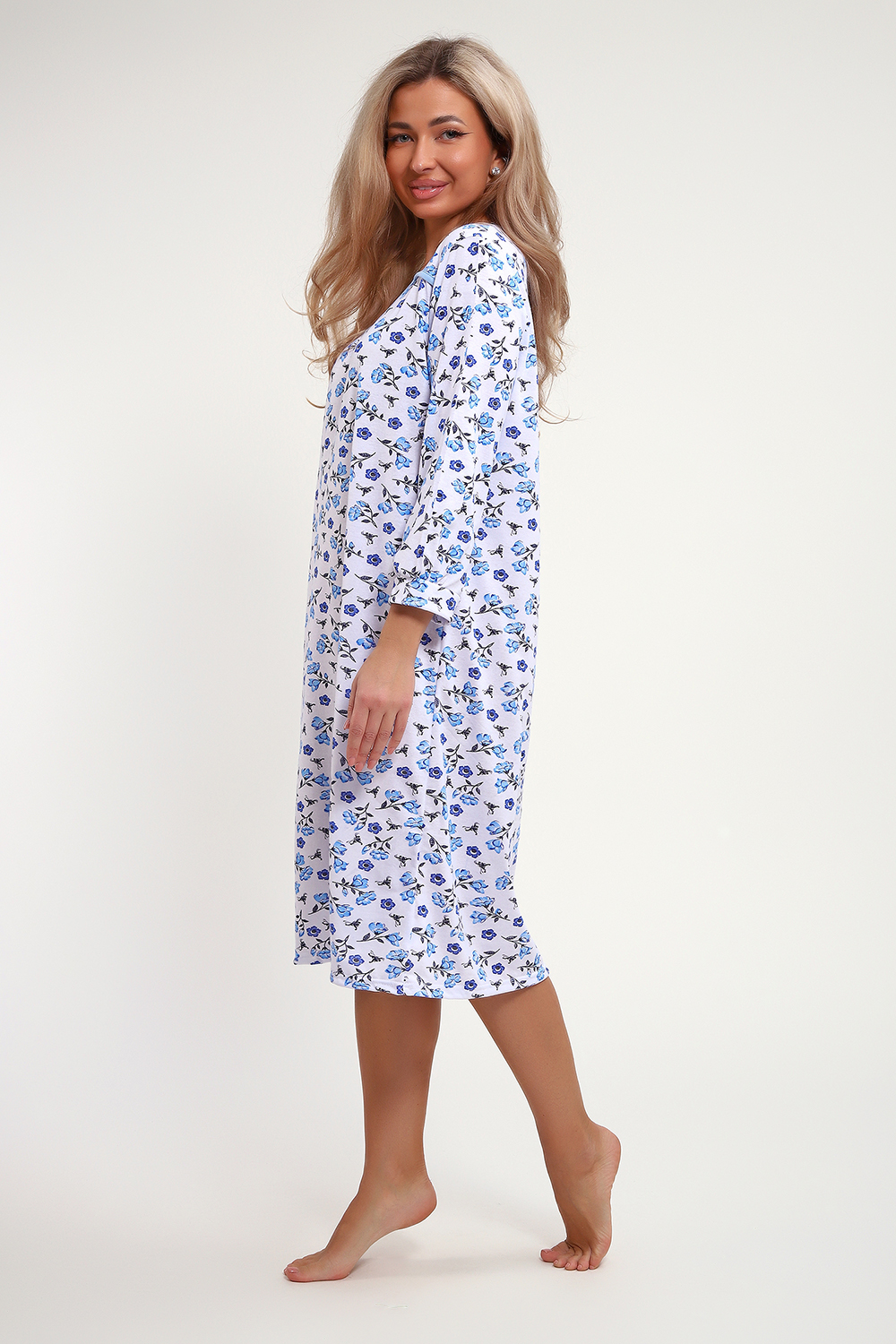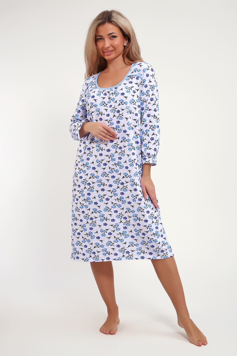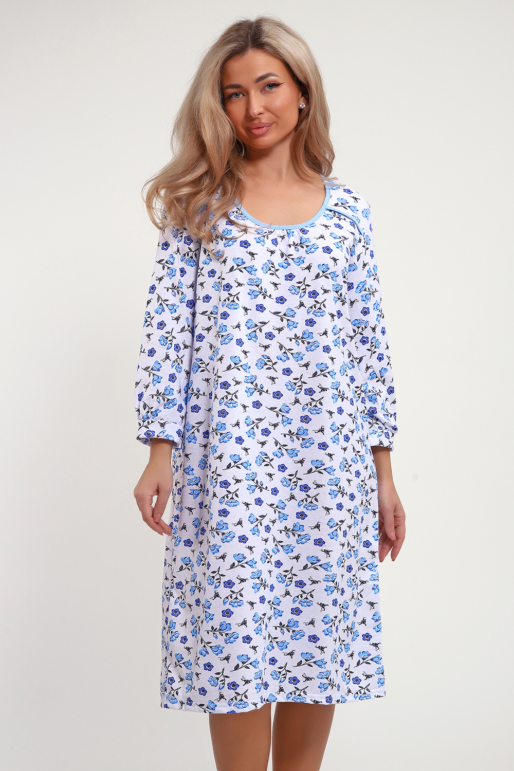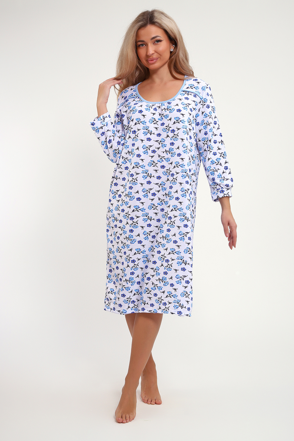 Сорочка из хлопковой белоземельной кулирки с нежным цветочным рисунком, рукава длинные.