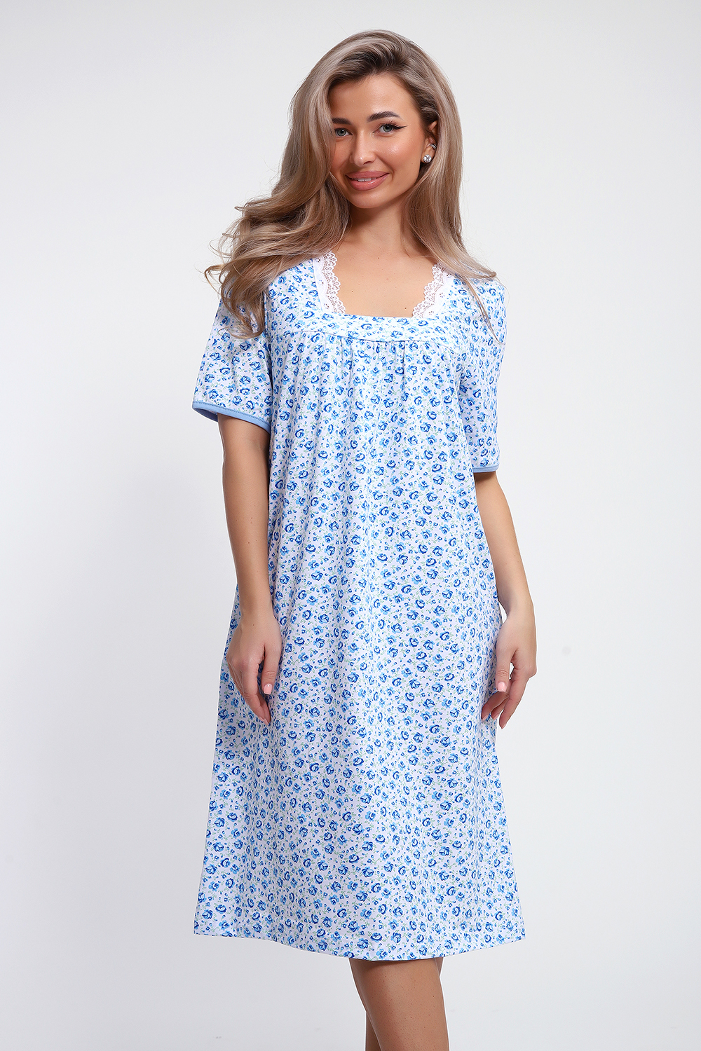 Сорочка хлопковая кулирка, белоземелька, декорирована эластичным кружевом по горловине. Подсказка 0663