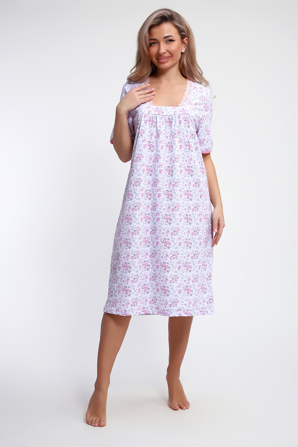 Сорочка хлопковая кулирка, белоземелька, декорирована эластичным кружевом по горловине. Подсказка 0663