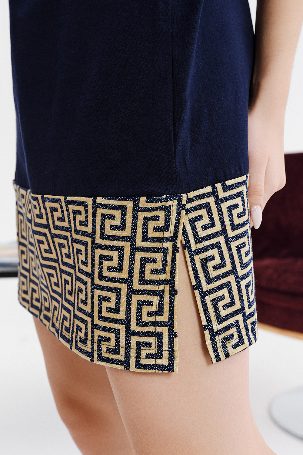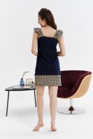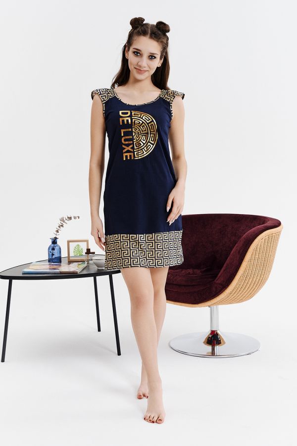 Сорочка полуприлегающего силуэта, с округлой горловиной, на широких бретелях, со вставкой из отделочного полотна по низу. В нижней части боковых швов обработаны разрезы. Горловина, проймы обработаны бейкой из отделочного полотна.