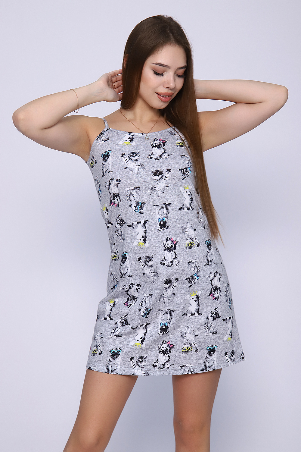 Сорочка женская на бретелях. Данная модель выполнена из трикотажного полотна кулирка (хлопок 100%). Отличная модель для дома и сна.