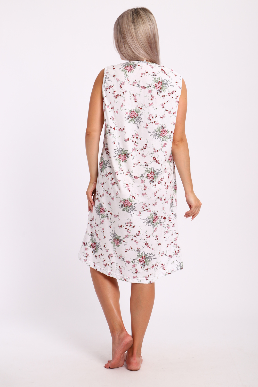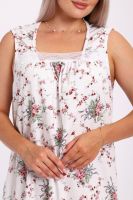 Сорочка женская с кружевом, без рукава. Данная модель выполнена из трикотажного полотна кулирка (хлопок 100%). Полочка изделия отрезная со сборкой, к которой пришито эластичное кружево. Отлично подходит для сна.