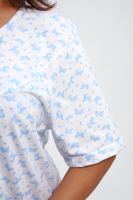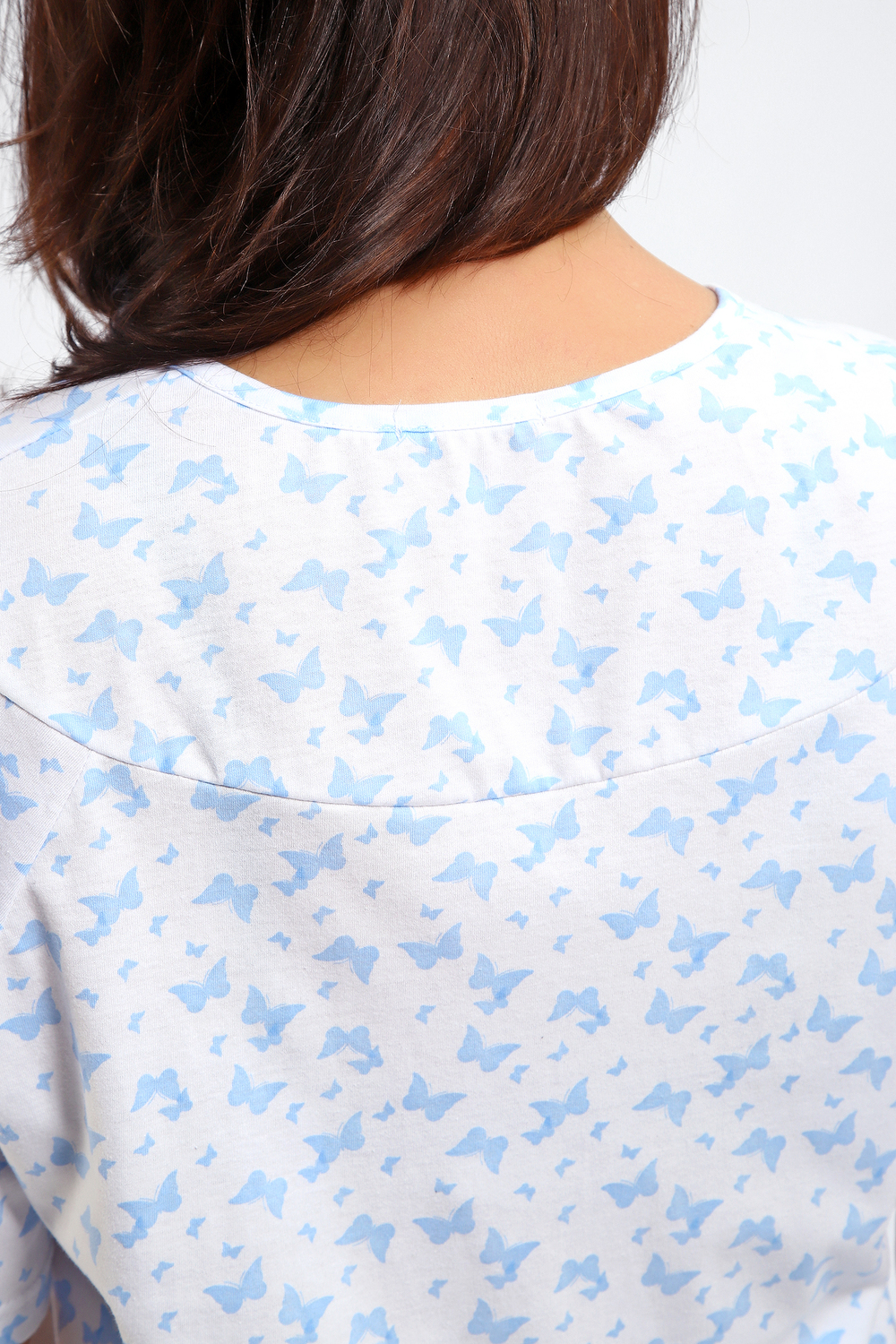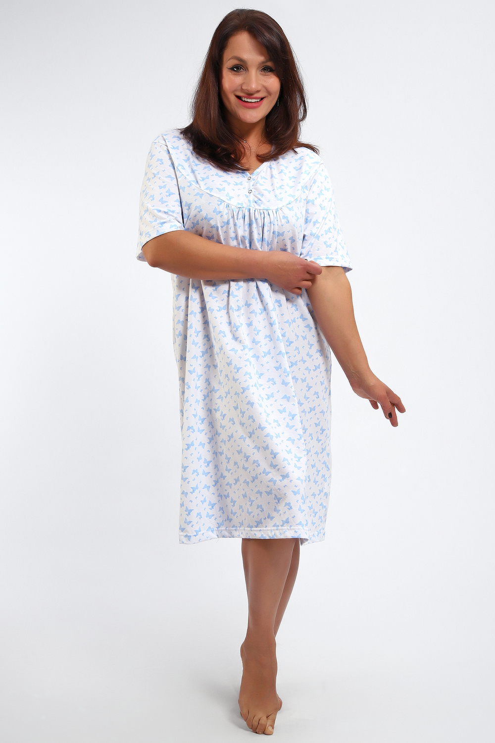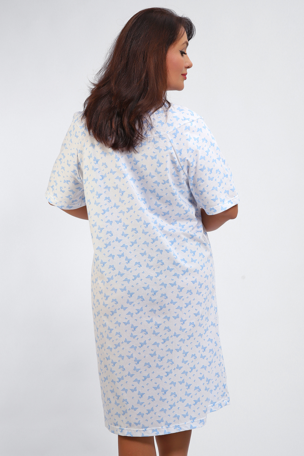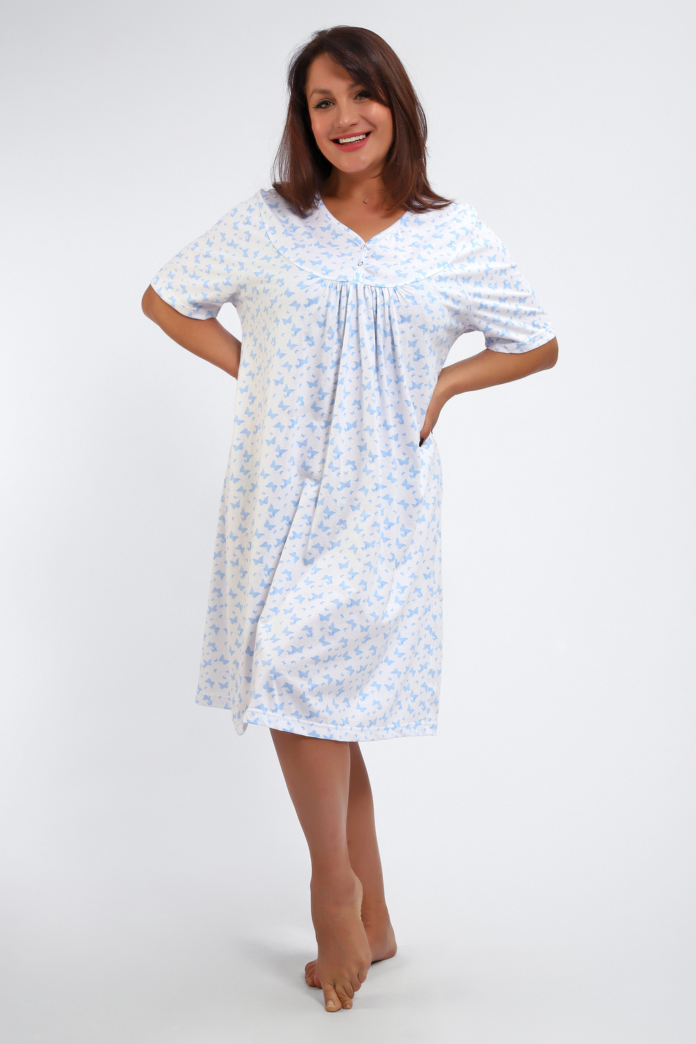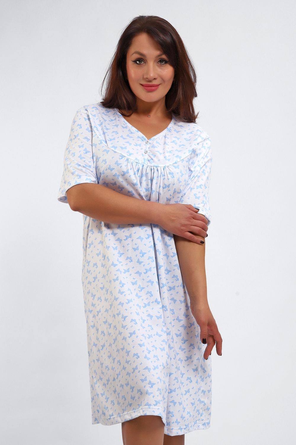 Сорочка женская с рукавом и кнопками. Данная модель выполнена из трикотажного полотна кулирка ( хлопок 100%). У данной модели полоска и спинка отрезная . Свободного покроя, не стесняет движения.