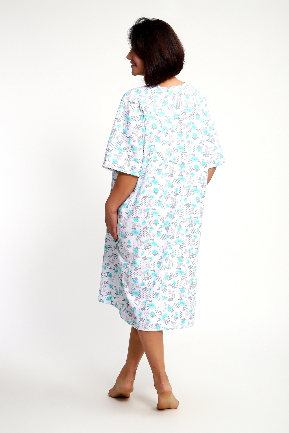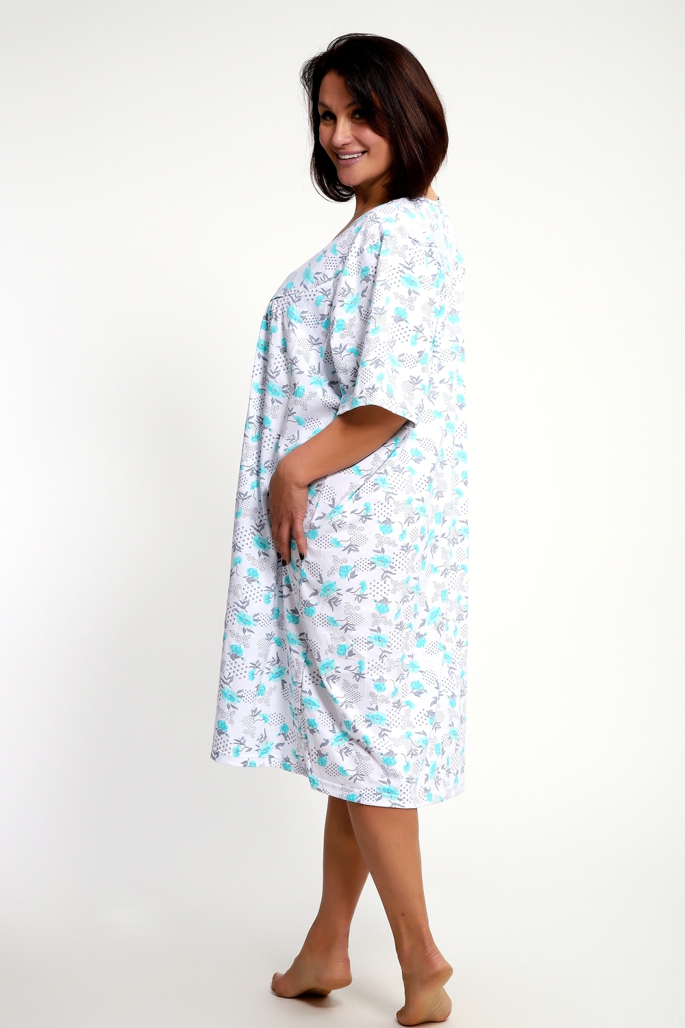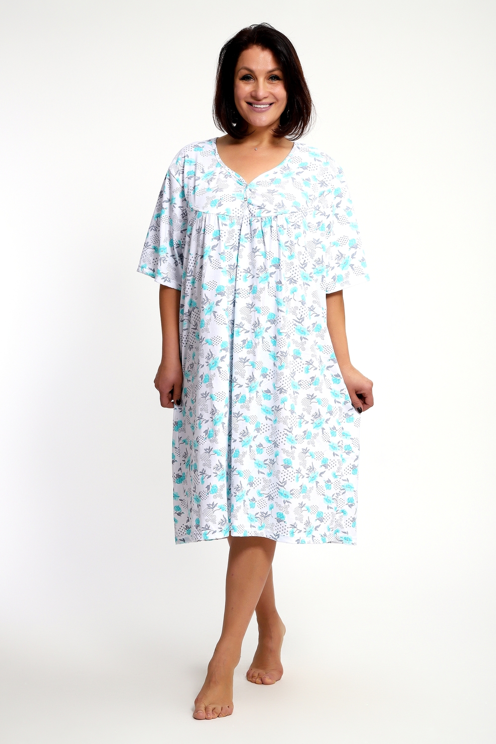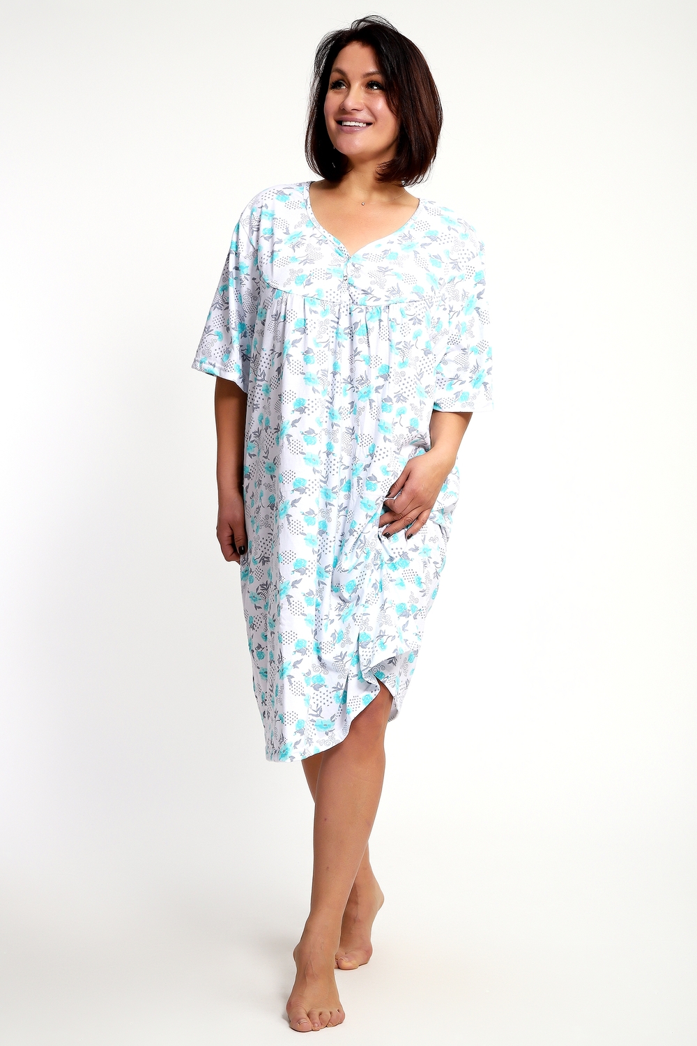 Сорочка женская с рукавом и кнопками. Данная модель выполнена из трикотажного полотна кулирка ( хлопок 100%). У данной модели полоска и спинка отрезная . Свободного покроя, не стесняет движения.