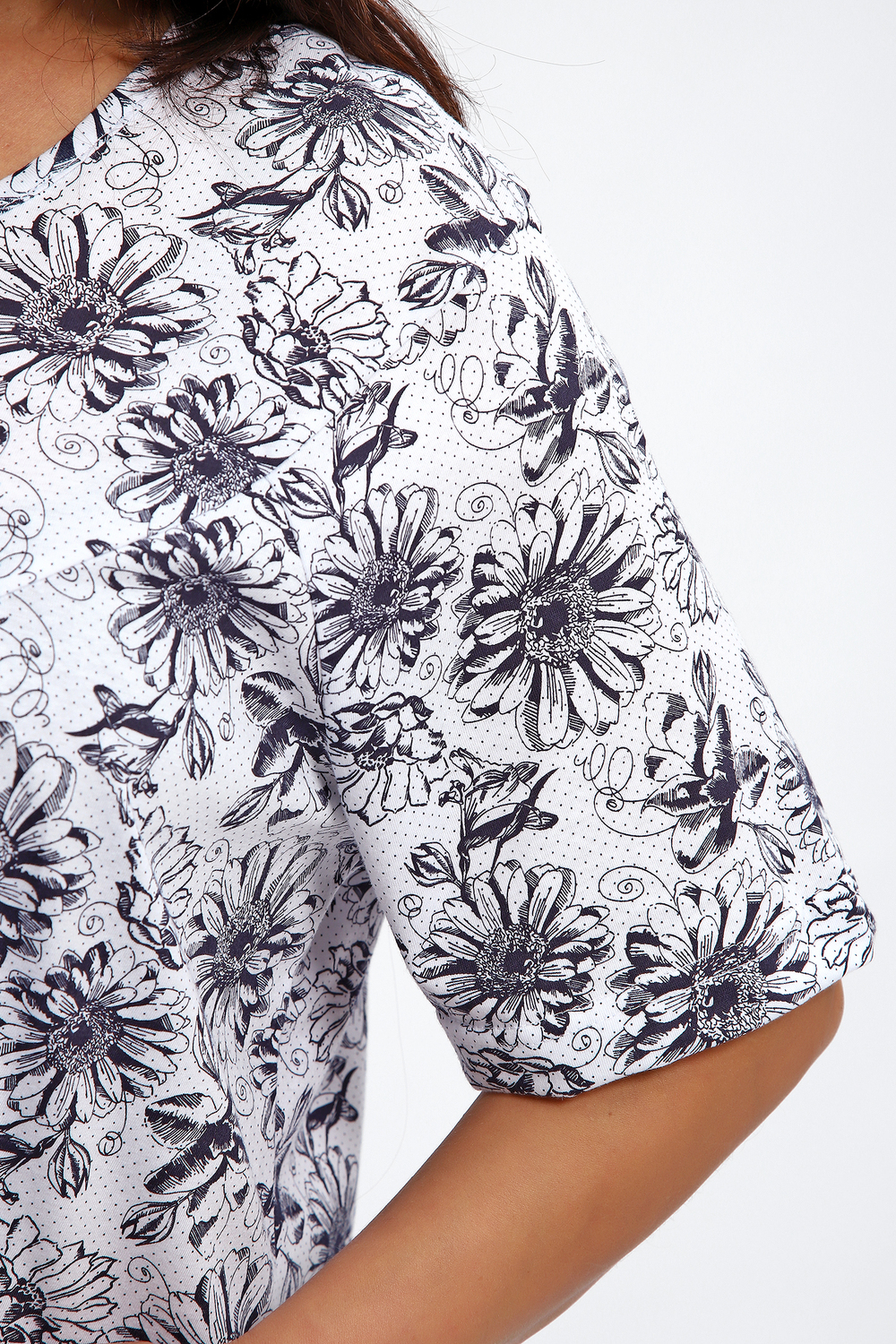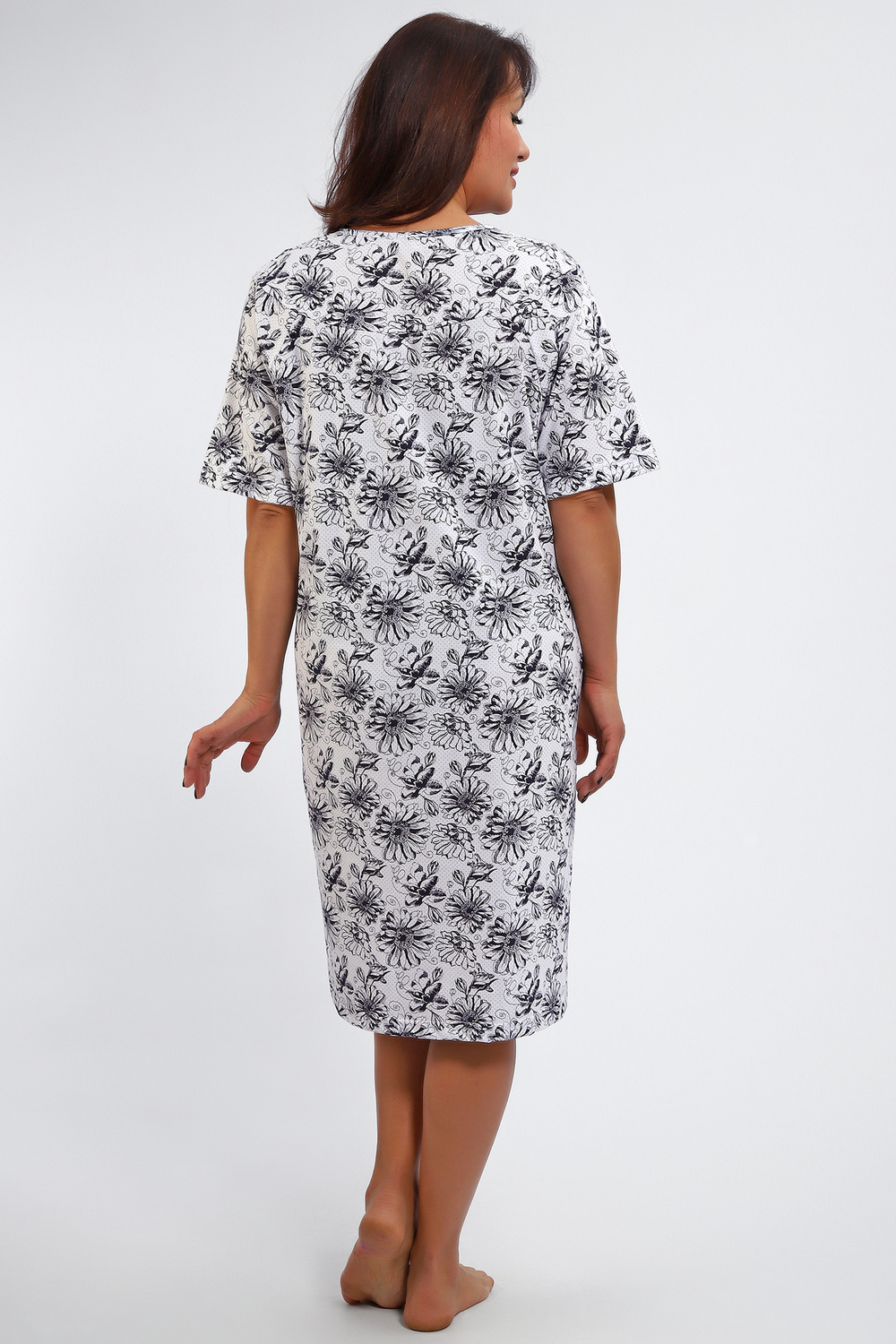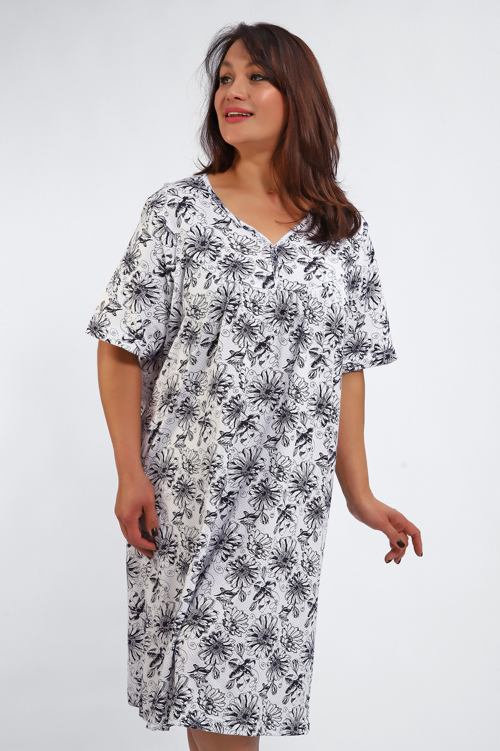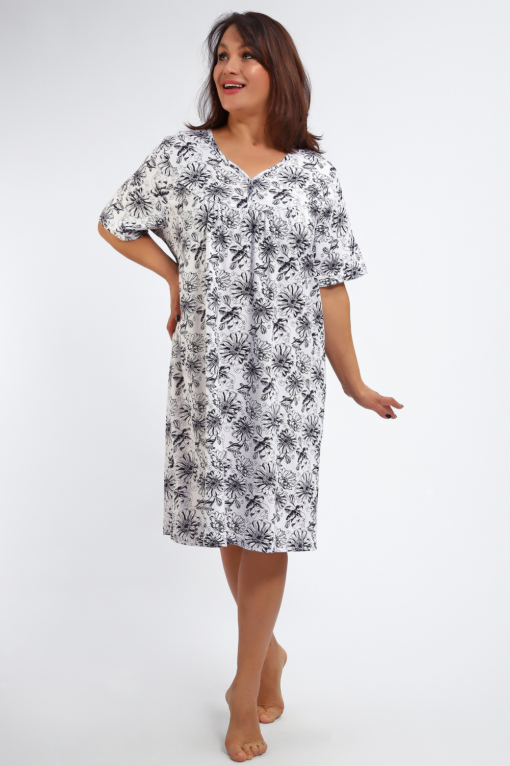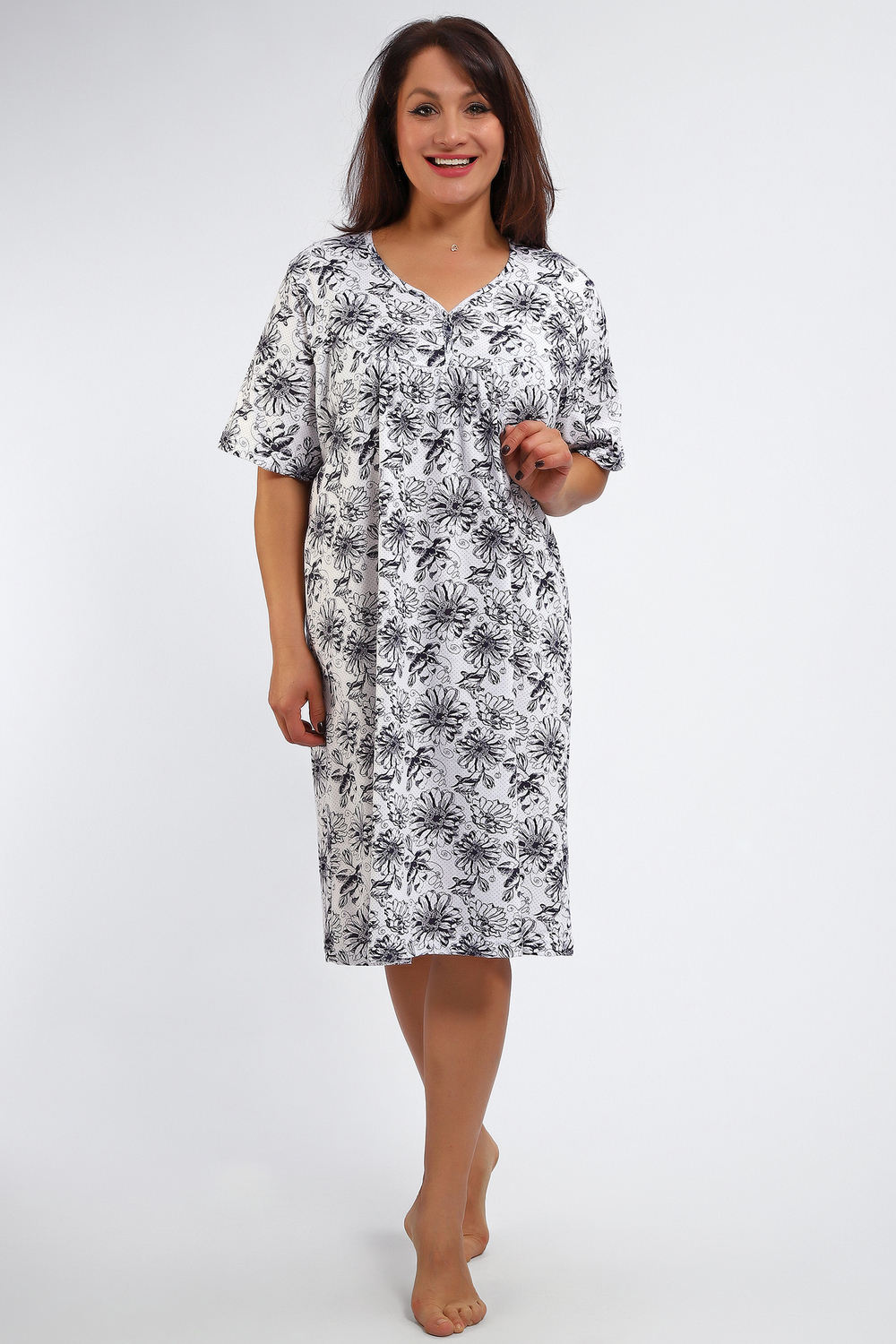 Сорочка женская с рукавом и кнопками. Данная модель выполнена из трикотажного полотна кулирка ( хлопок 100%). У данной модели полоска и спинка отрезная . Свободного покроя, не стесняет движения.