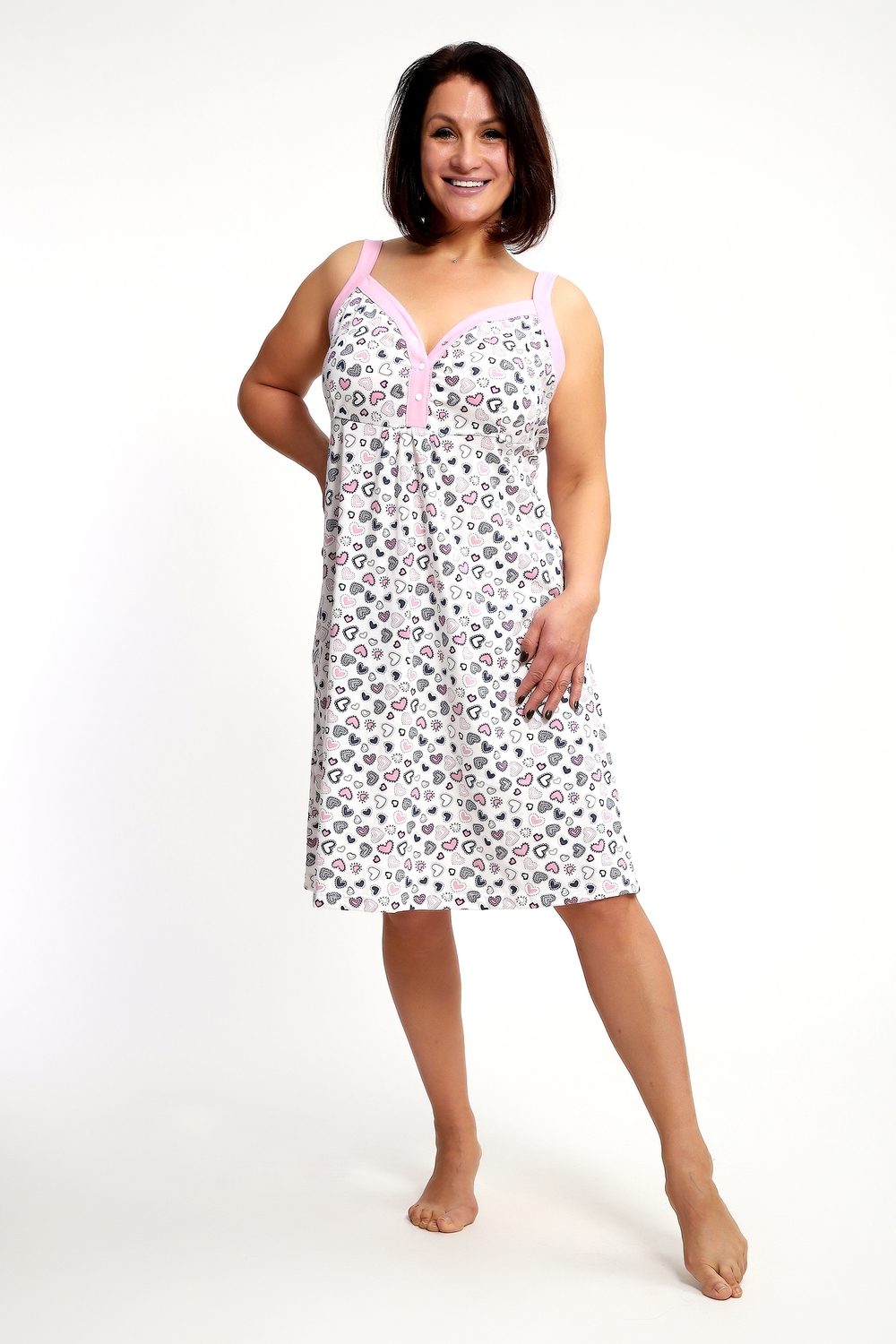 Сорочка женская без рукава на брителях . Данная модель выполнена из трикотажного полотна кулирка ( хлопок 100%). Полочка отрезная с кнопками. Горловина обработана широкой окантовкой. Отличная модель для сна и кормления.