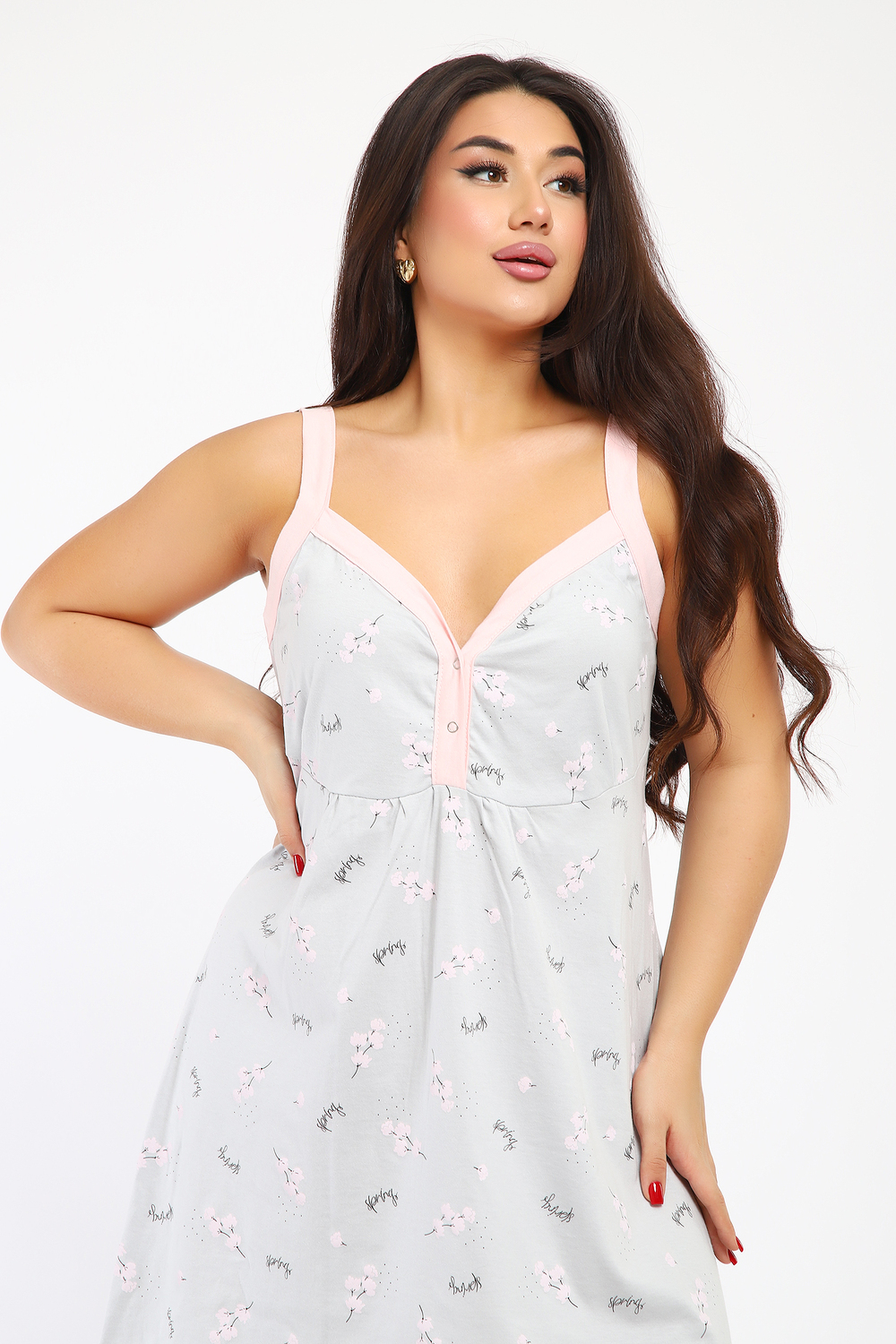 Сорочка женская без рукава на брителях . Данная модель выполнена из трикотажного полотна кулирка ( хлопок 100%). Полочка отрезная с кнопками. Горловина обработана широкой окантовкой. Отличная модель для сна и кормления.