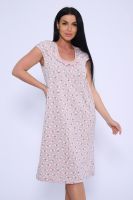 Женская сорочка из кулирки. Рукава очень короткие, окантовка, цветочный дизайн, две расцветки — розовая и шоколадная, общая длина приблизительно до коленей. Размеры от 44 до 62.