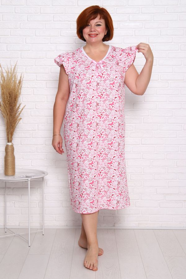 Женская сорочка свободного покроя с кокетками и рукавом - крылышком. Горловина сорочки окантована. Низ крылышек и сорочки обработаны декоративной строчкой.