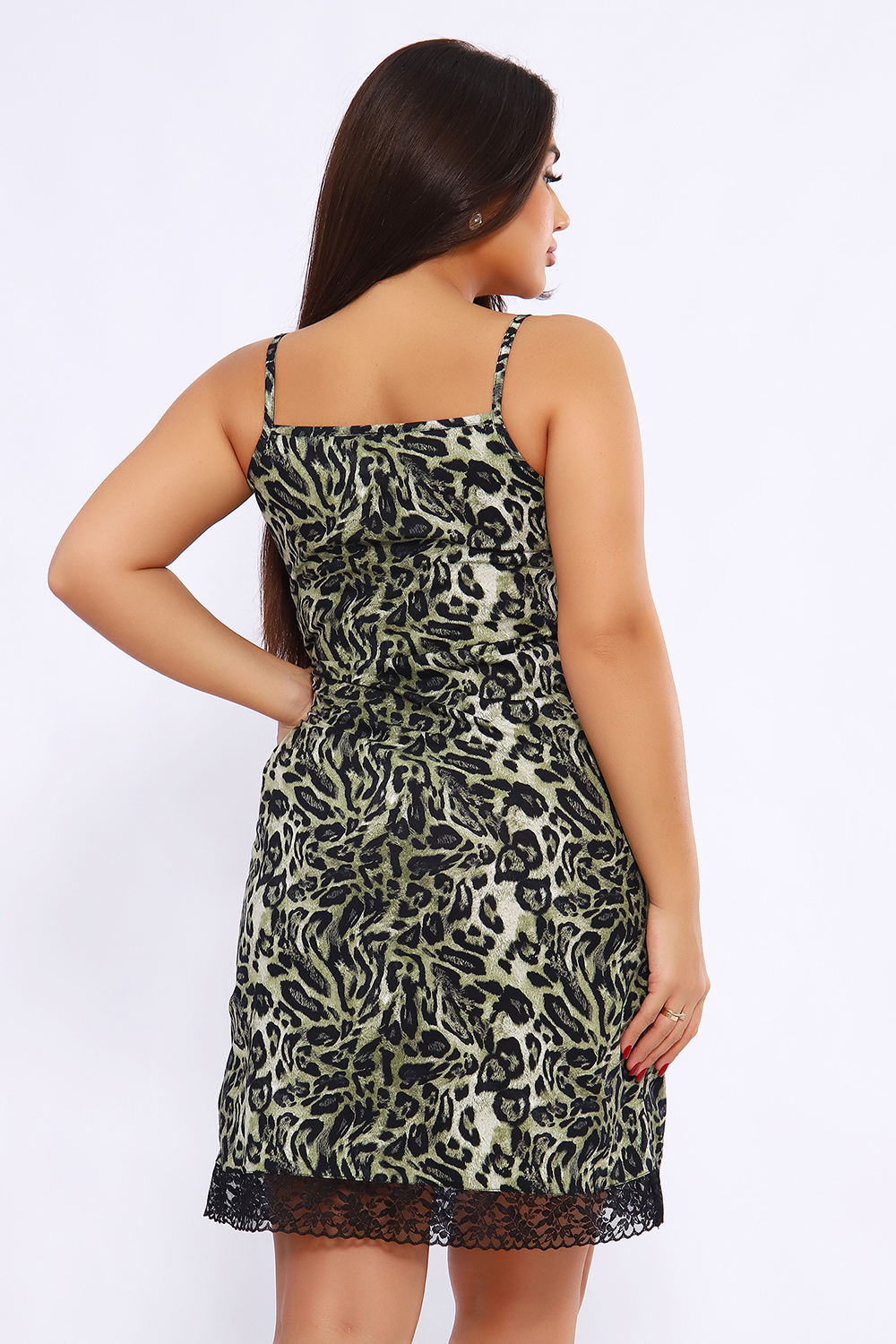 Сорочка женская с кружевом на бретелях. Данная модель выполнена из трикотажного полотна (кулирка). Полочка с V-образным вырезом. Низ изделия и горловина украшены эластичным кружевом шириной 5 см. Очень удобный крой и элегантность этой модели порадуют вас.